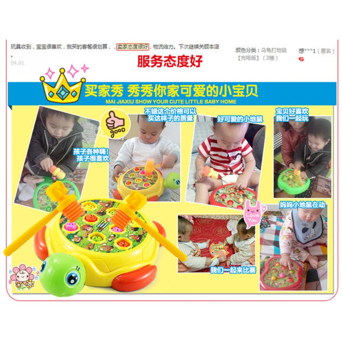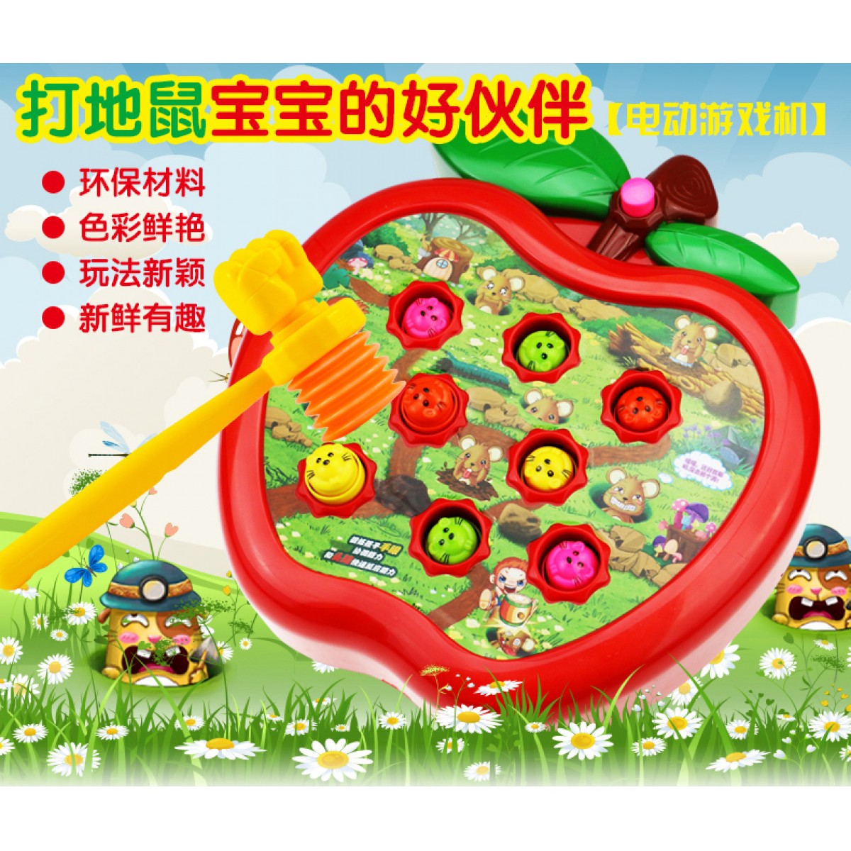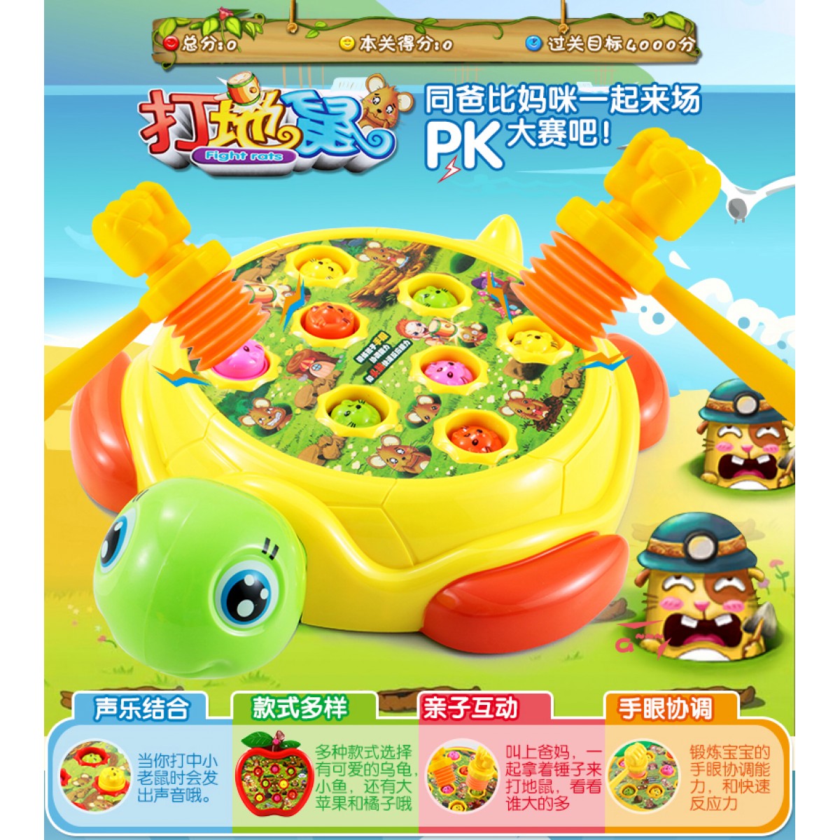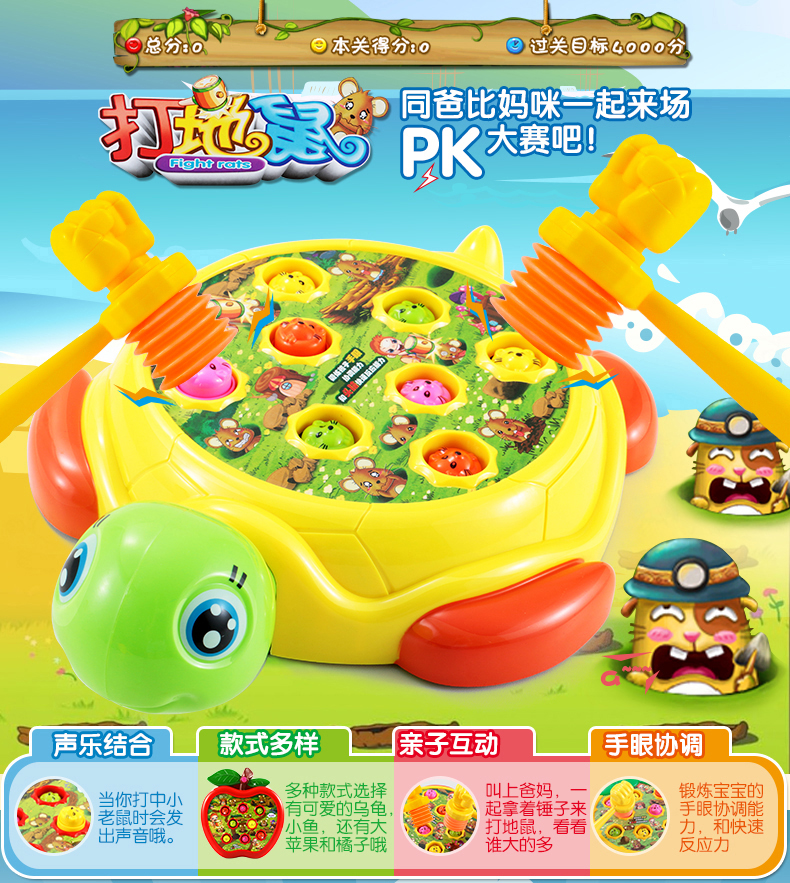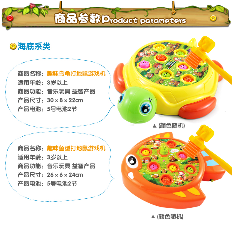 電動(dòng)玩具/音樂(lè)系列 。適用年齡: 12個(gè)月 2歲 3歲 4歲 5歲 6歲;中性玩具類(lèi)型: 塑膠玩具顏色分類(lèi): 烏龜打地鼠【送電池+2錘】