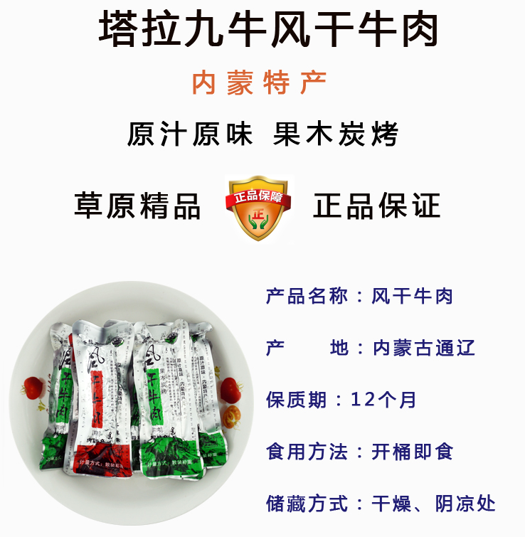 商品名稱:內(nèi)蒙古特產(chǎn)手撕風干牛肉 塔拉九牛干果木碳烤牛肉干 500g