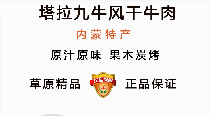 商品名稱:內(nèi)蒙特產(chǎn)手撕風(fēng)干牛肉干 塔拉九牛獨立包裝 風(fēng)干牛肉干 成吉思汗軍糧 500g