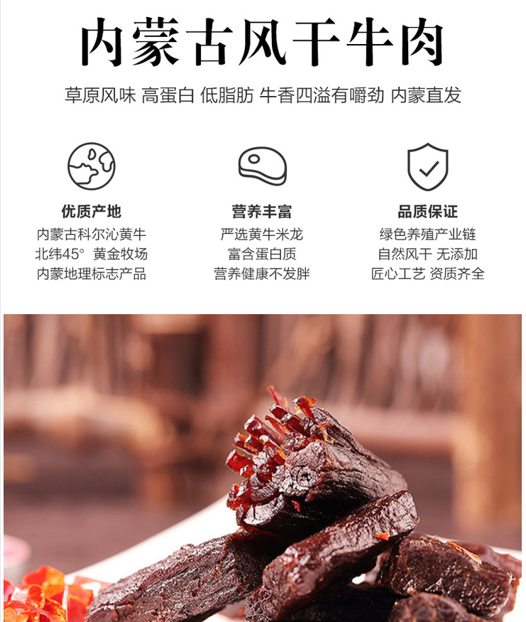 商品名稱:內(nèi)蒙特產(chǎn) 手撕風(fēng)干牛肉干 散裝牛皮紙250g