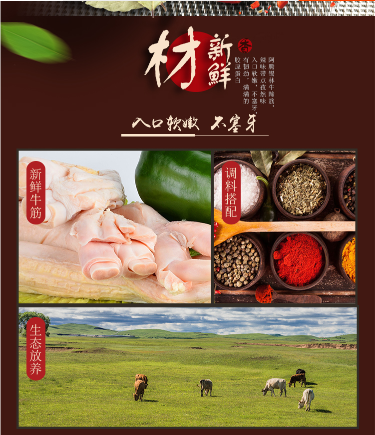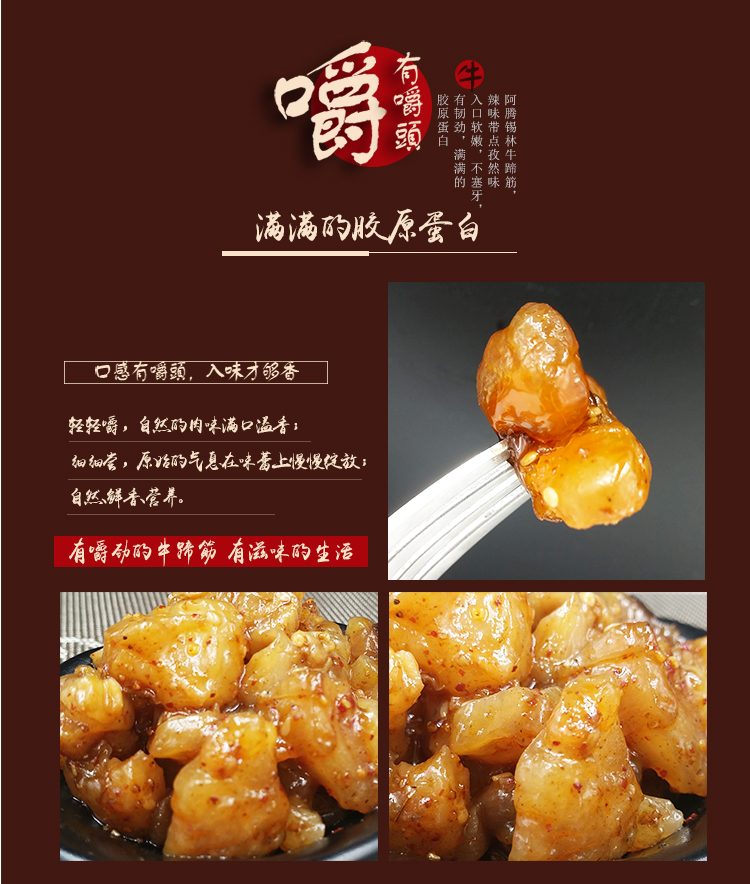 商品名稱:內(nèi)蒙古特產(chǎn)零食小吃 塔拉九牛牛蹄筋香辣味500g