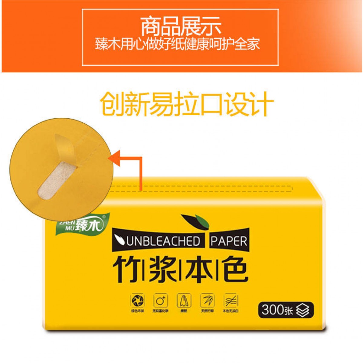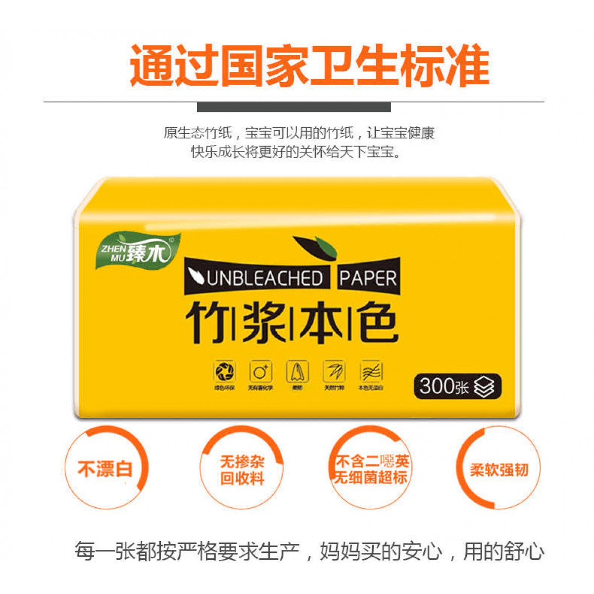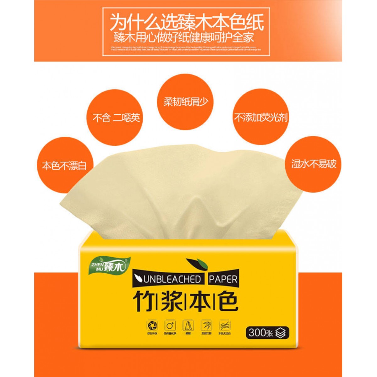 【30包箱裝 300張/包】臻木本色竹漿紙巾抽紙家用批發(fā)整箱衛(wèi)生紙
