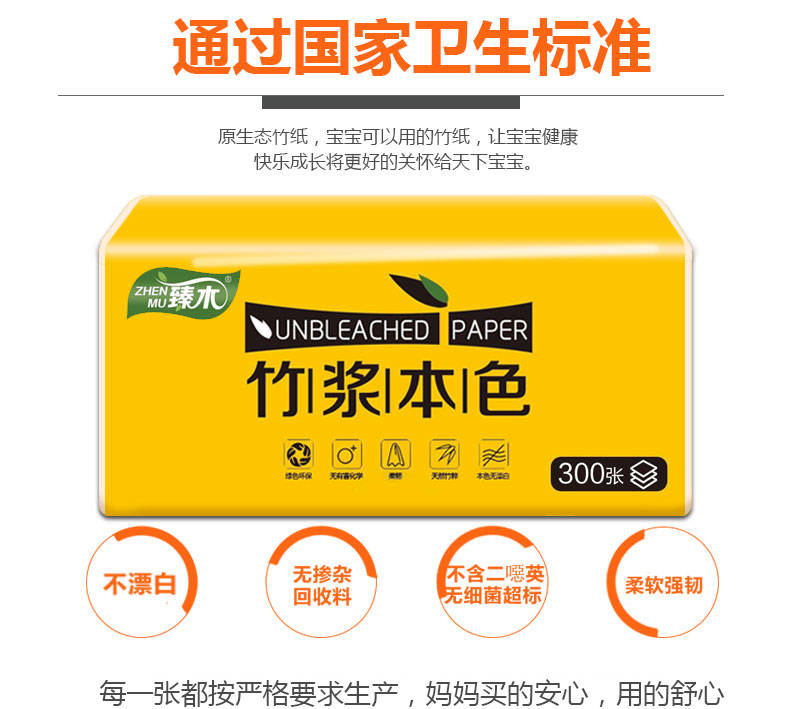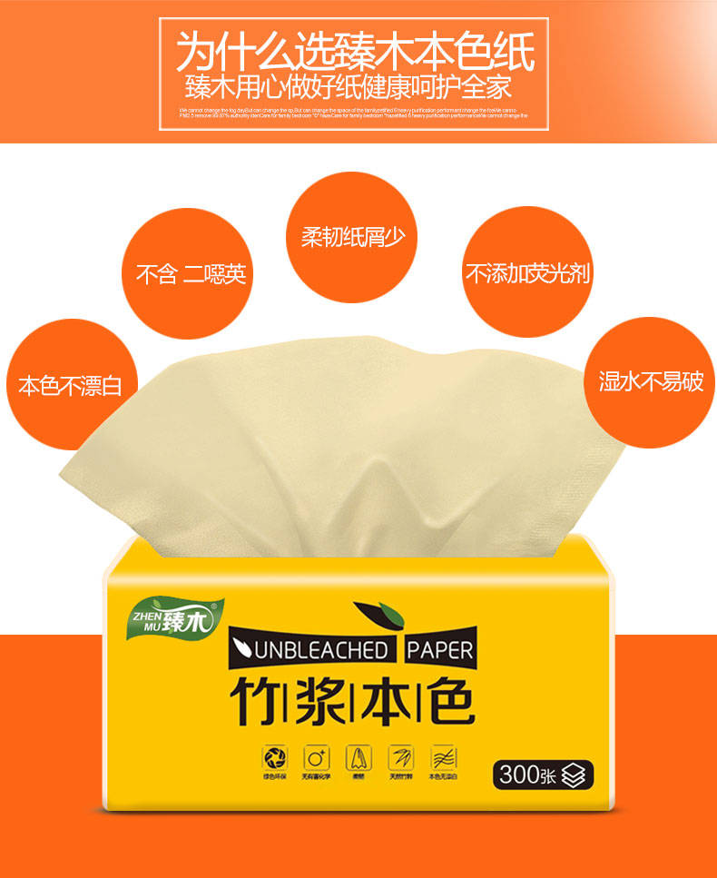商品名稱:【30包箱裝 300張/包】臻木本色竹漿紙巾抽紙家用批發(fā)整箱衛(wèi)生紙