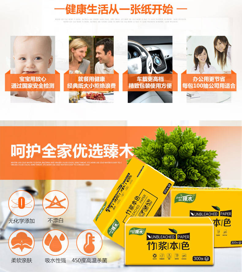 臻木本色竹漿紙巾抽紙