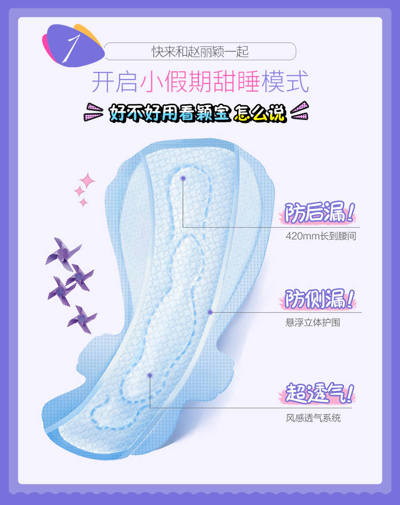 趙麗穎推薦潔婷衛(wèi)生巾純棉透氣防漏超長加長夜用姨媽巾多組合批發(fā)