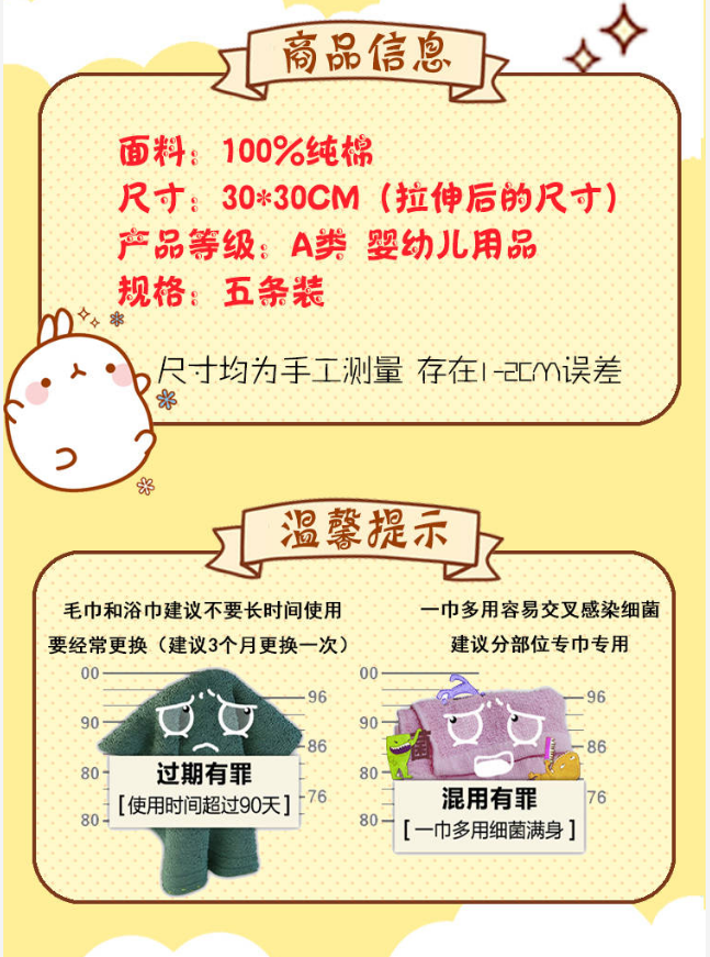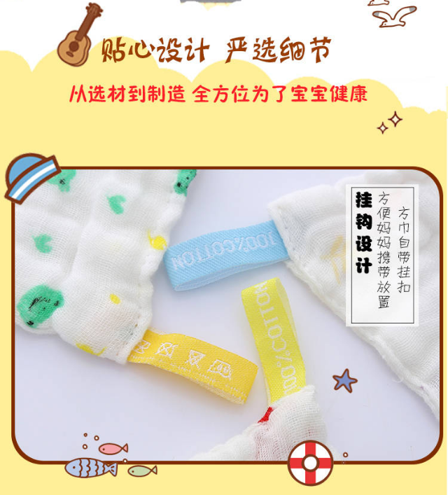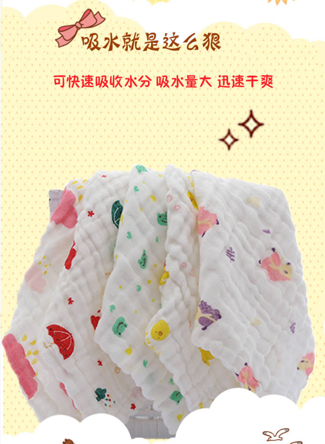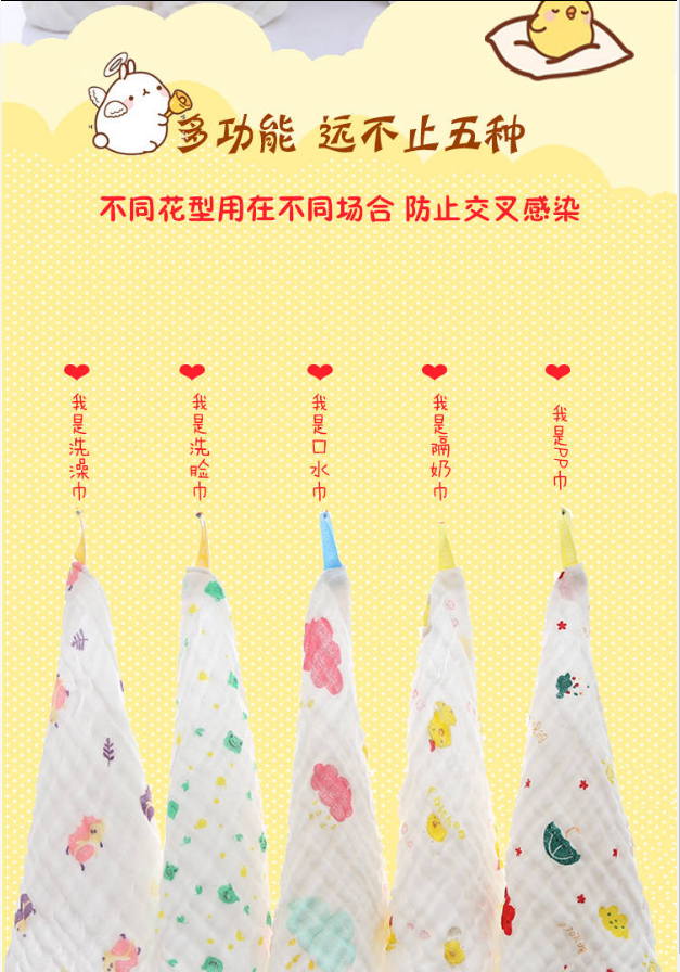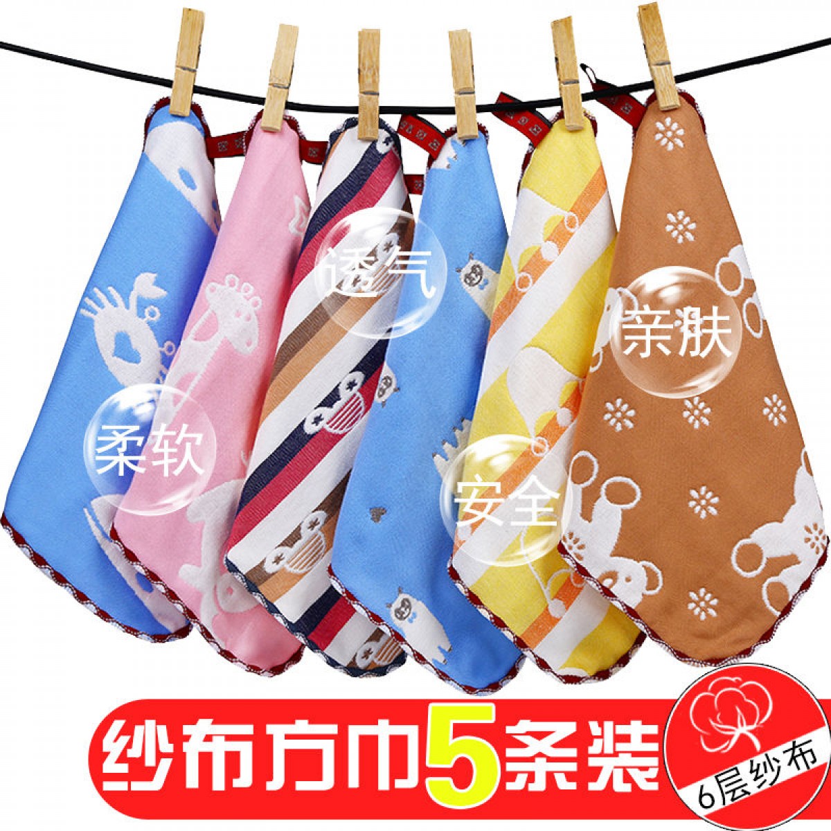 商品名稱:5條裝 卡通純棉六層紗布小方巾兒童毛巾寶寶口水巾嬰兒洗臉巾手帕