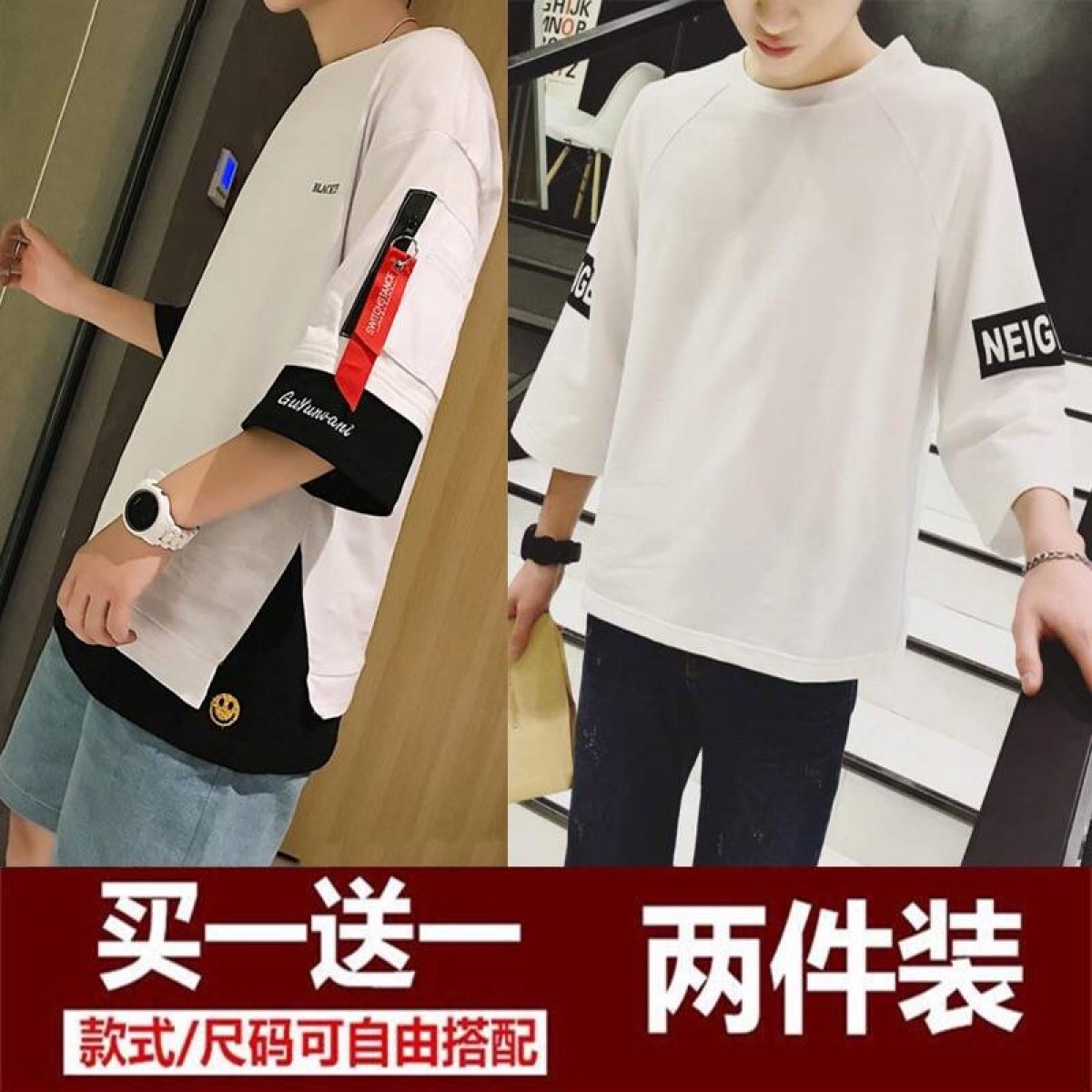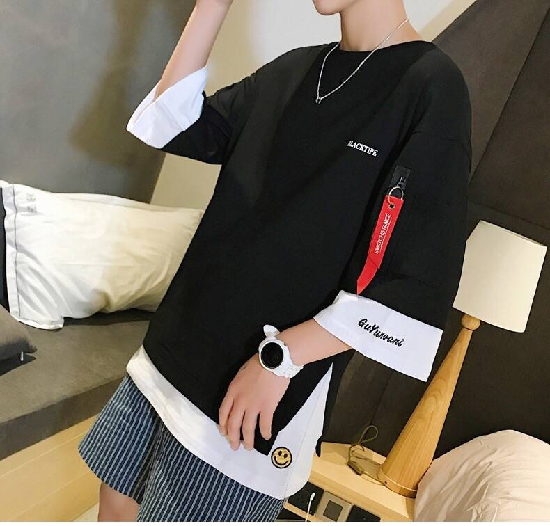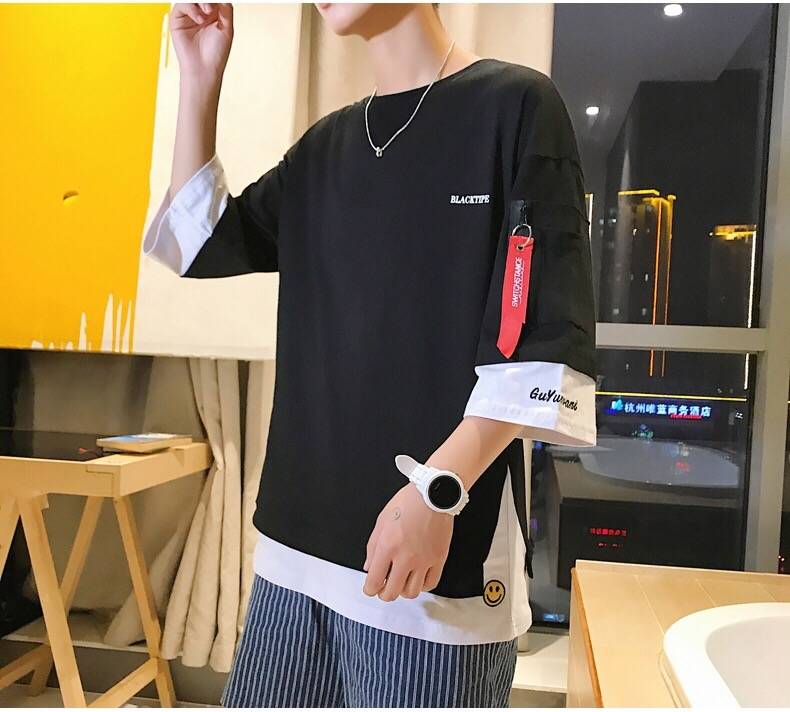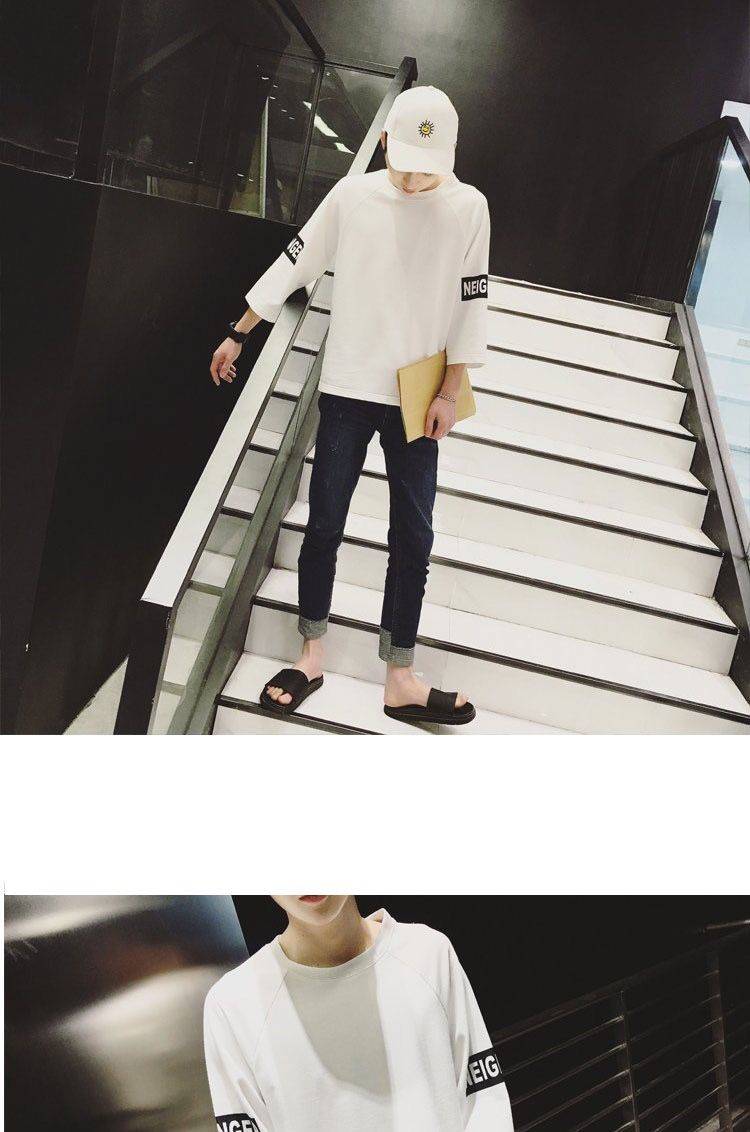 商品名稱:男裝秋季男士長袖t恤韓版寬松青少年衣服男學(xué)生七分袖上衣半袖夏