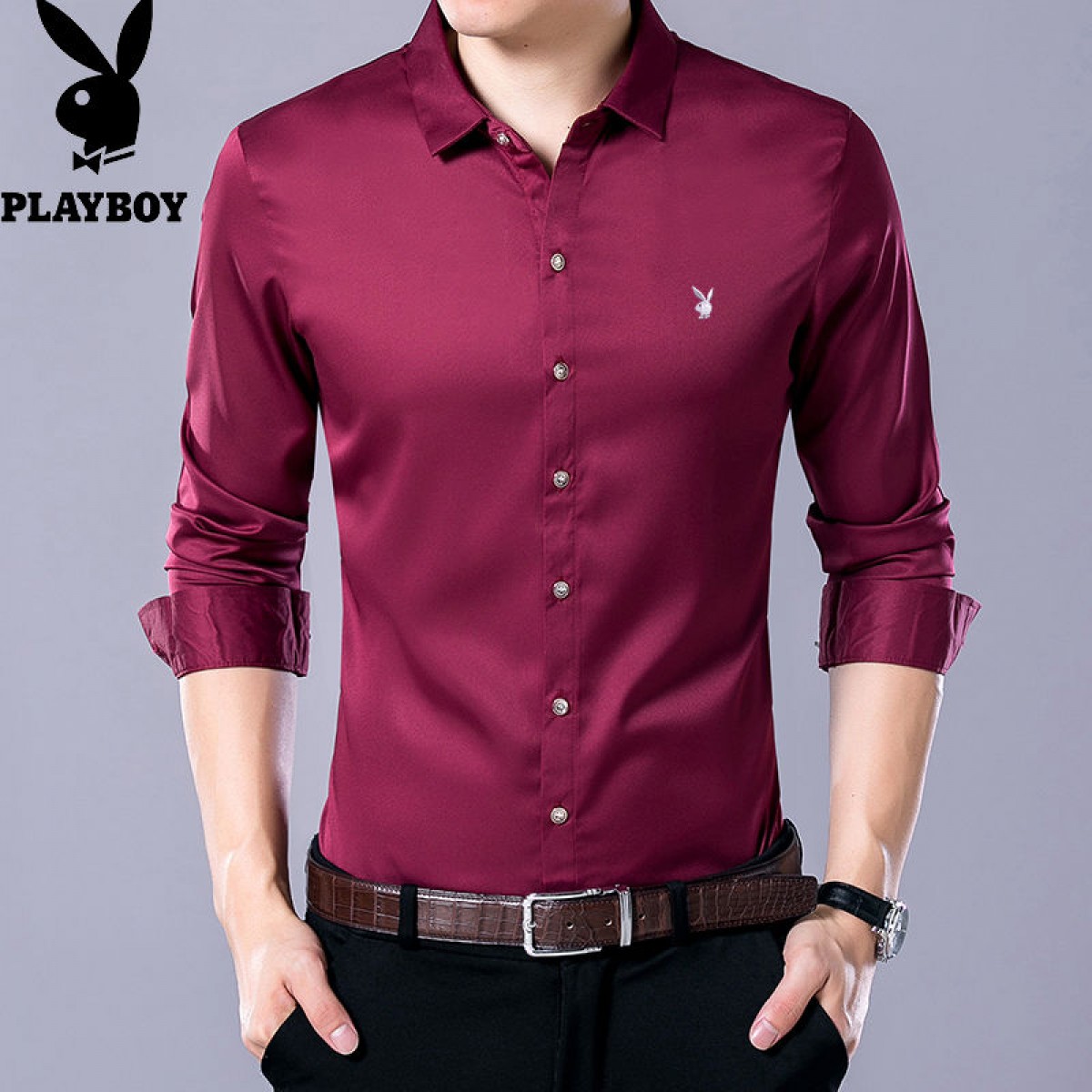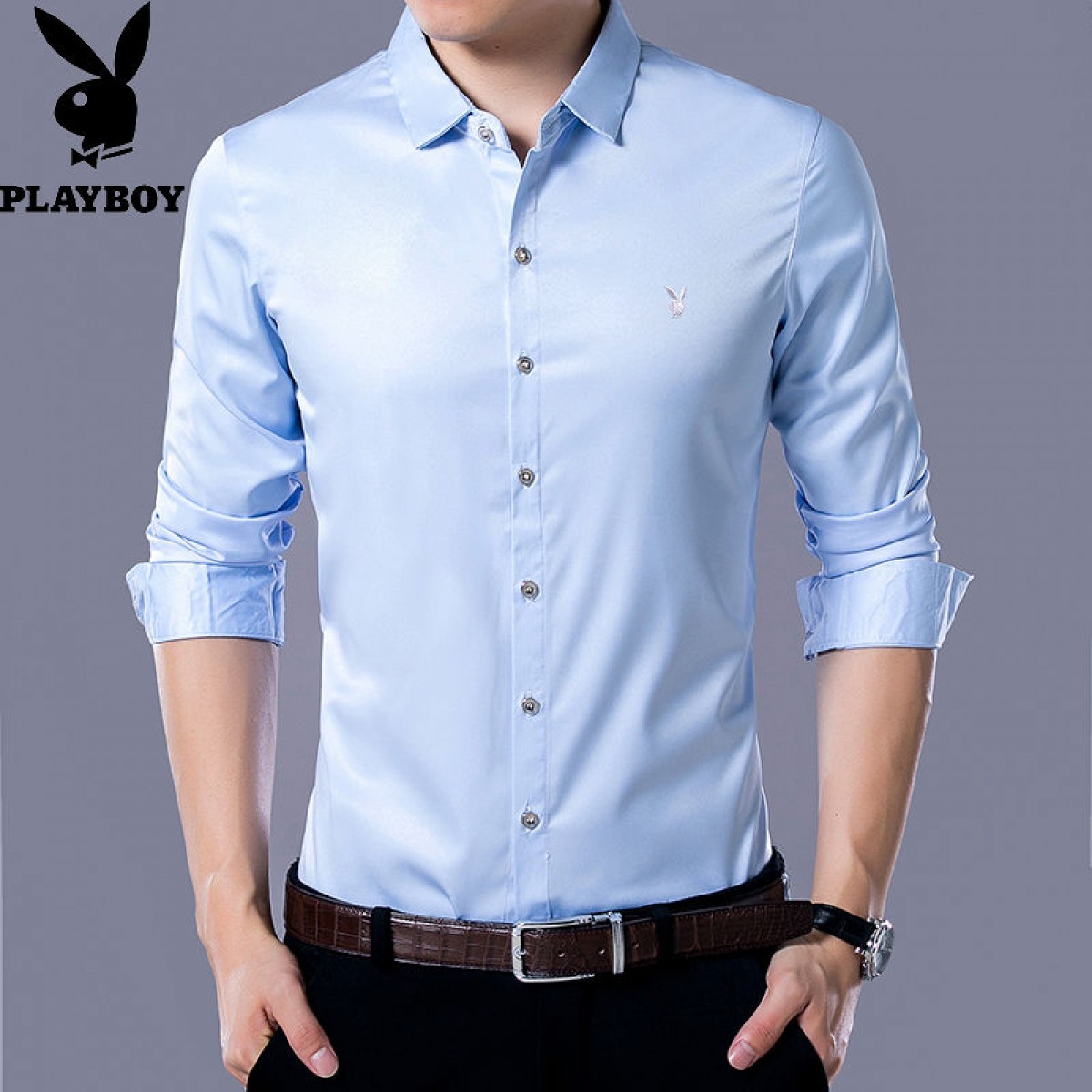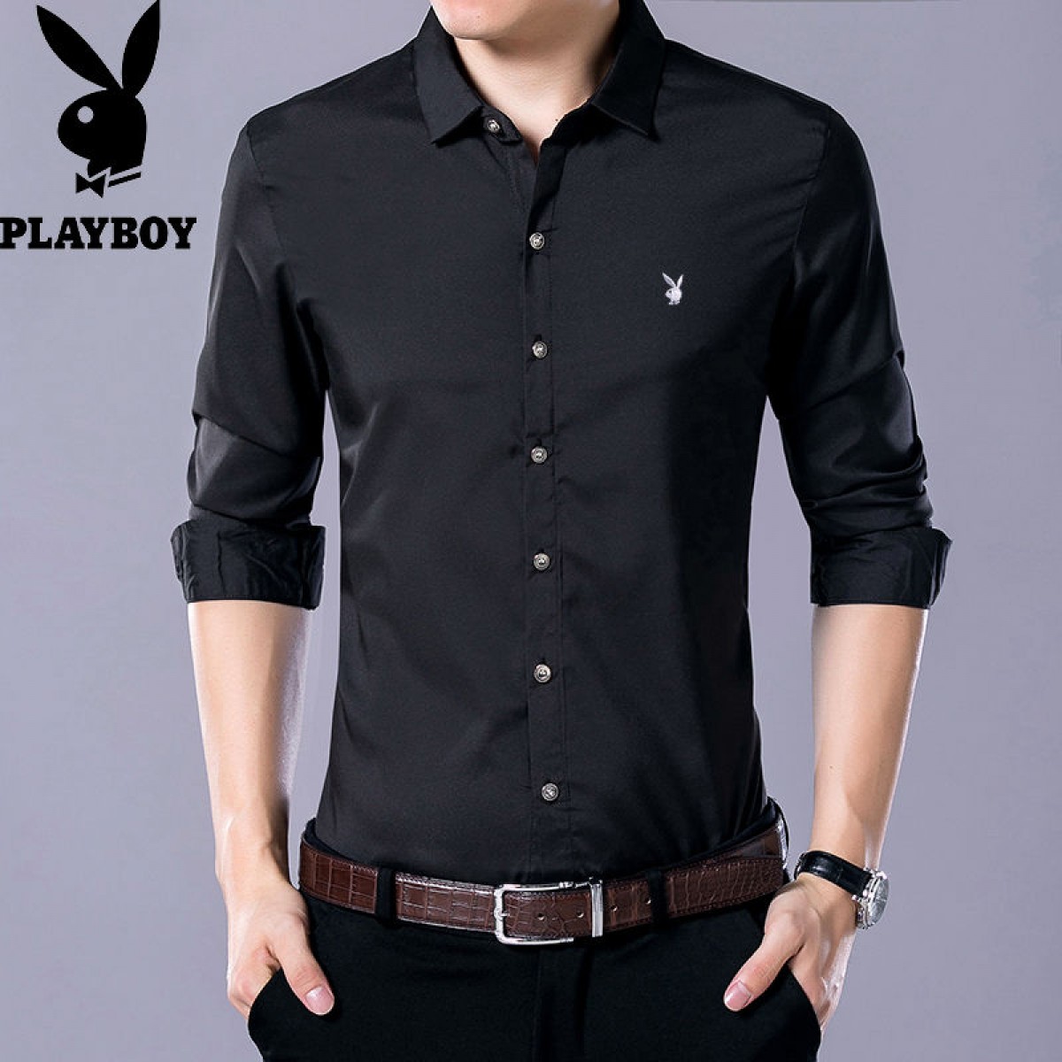 2019春季新款【花花公子貴賓】男士薄款長袖襯衫男韓版潮流白襯衣