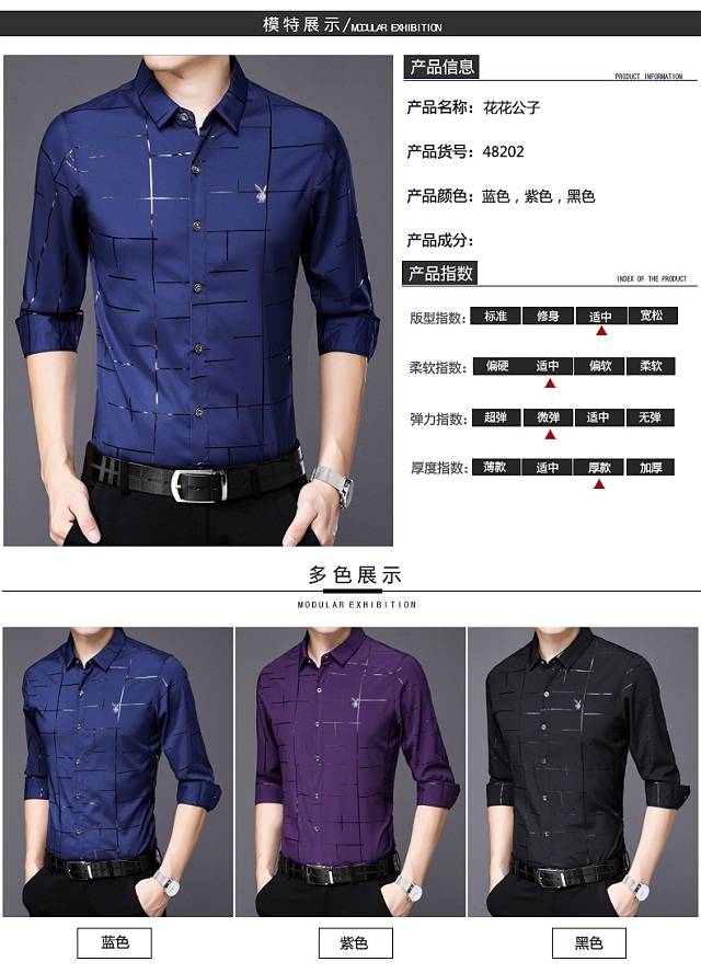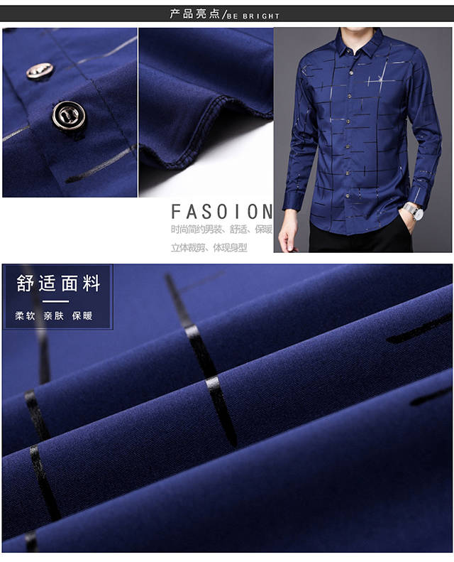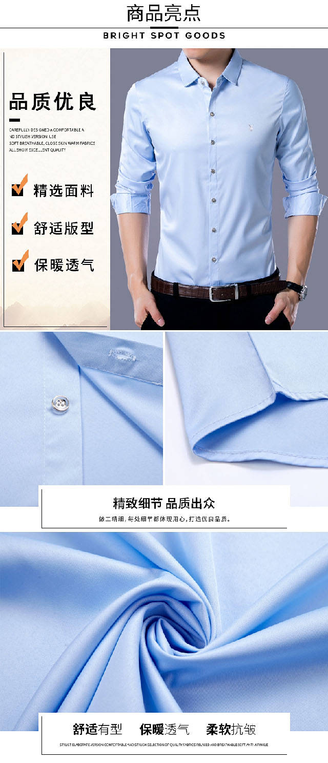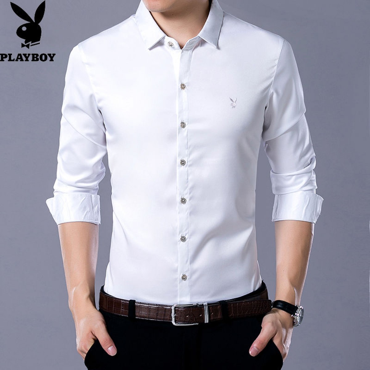 商品名稱:2019春季新款【花花公子貴賓】男士薄款長袖襯衫男韓版潮流白襯衣