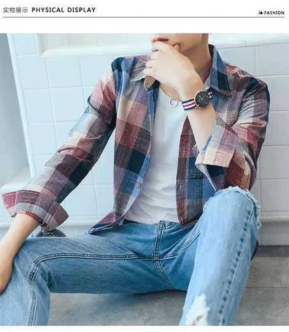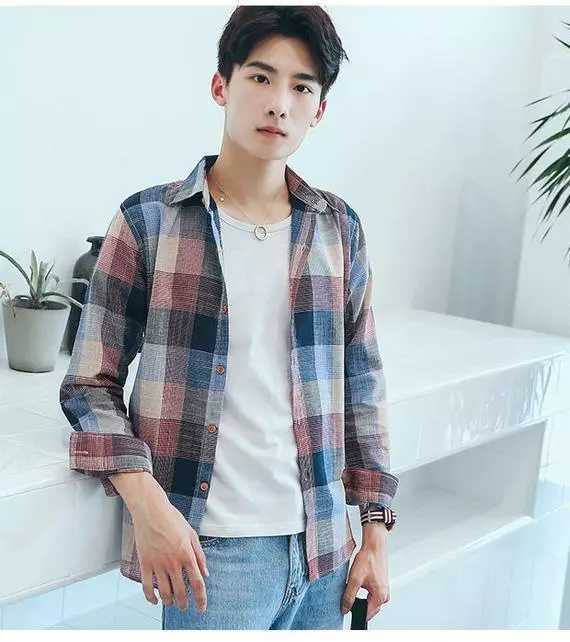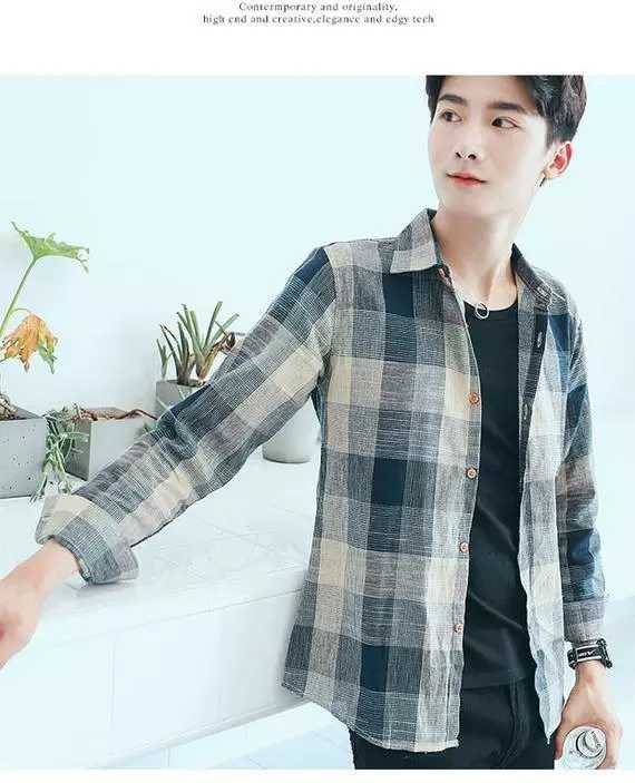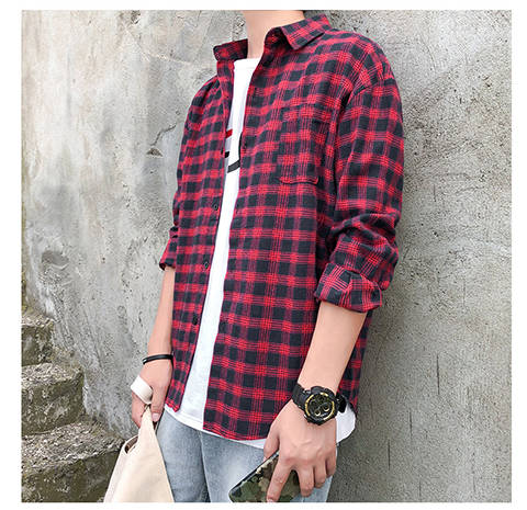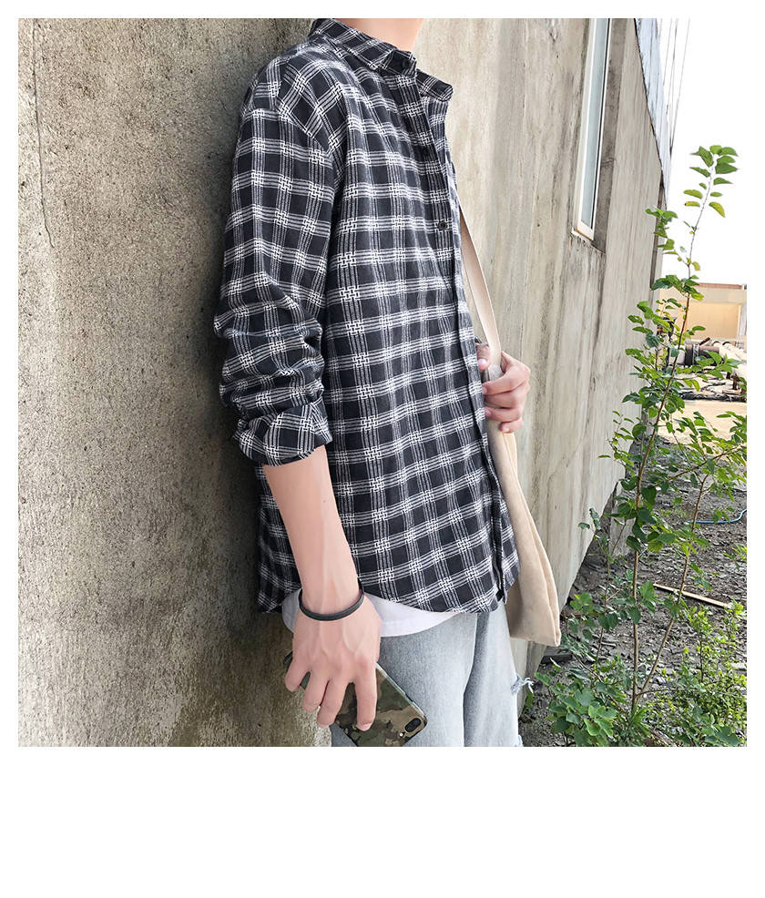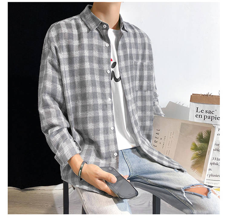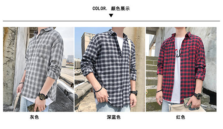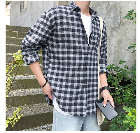 商品名稱:韓版男士外套休閑春秋夏季寬松格子襯衫學(xué)生男港風(fēng)長袖襯衣文藝潮