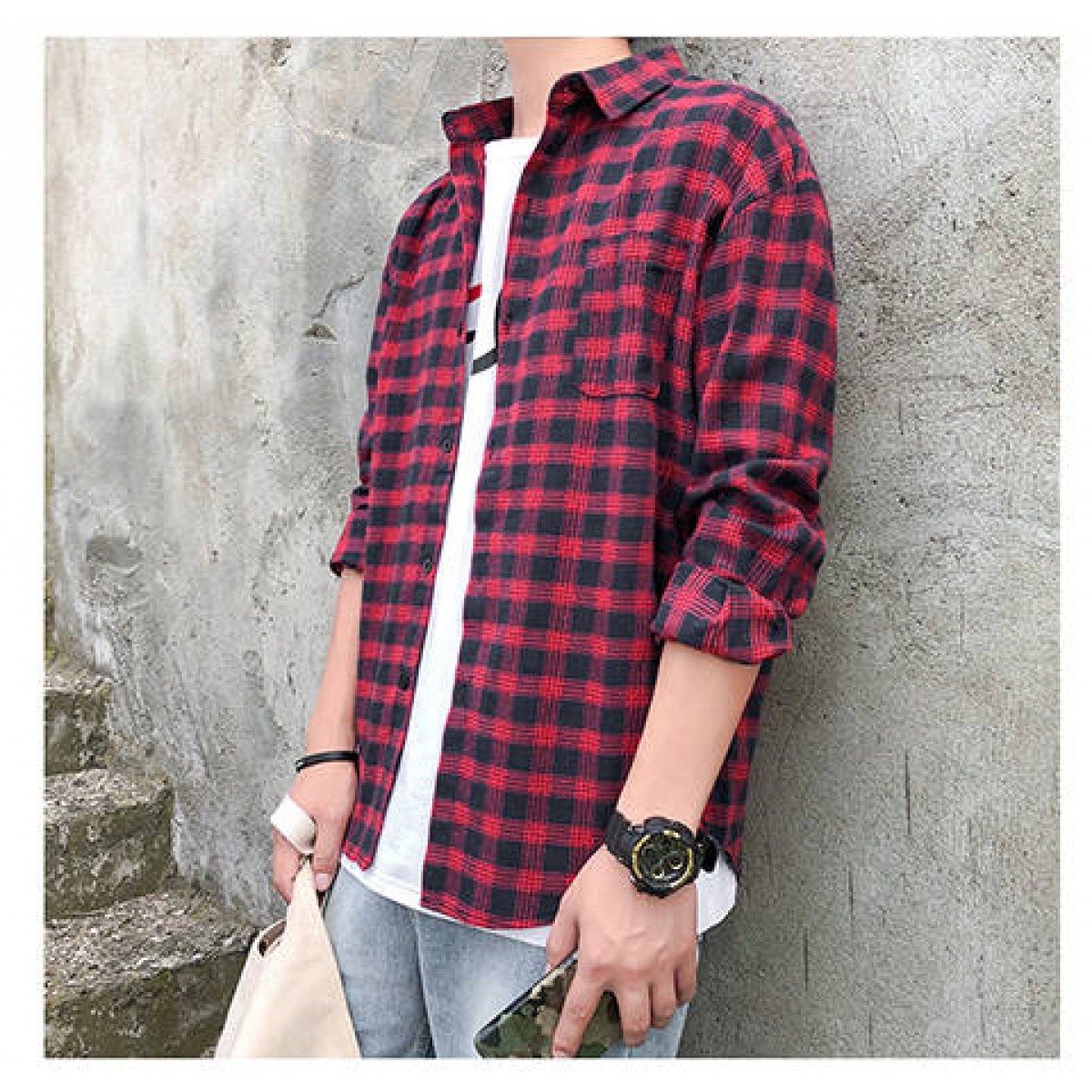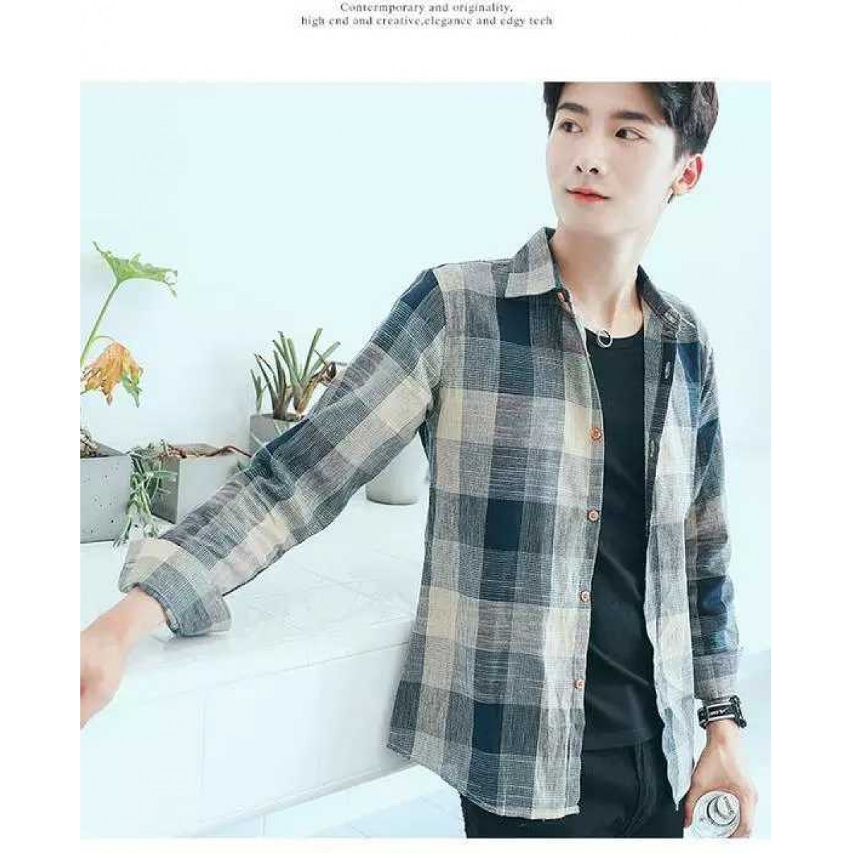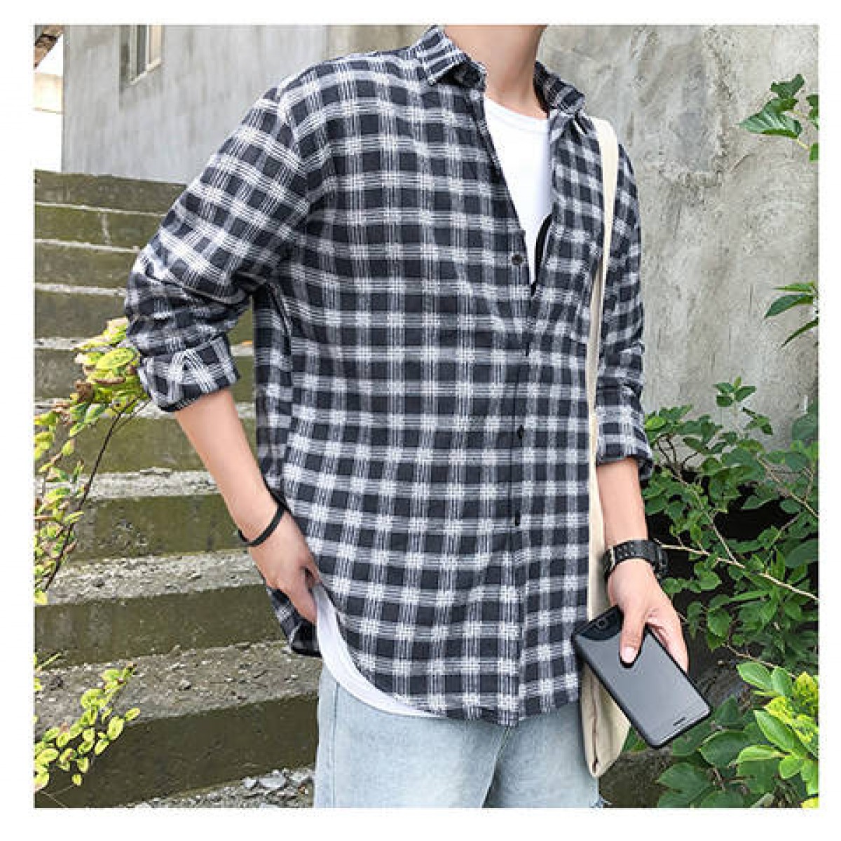 商品名稱:韓版男士外套休閑春秋夏季寬松格子襯衫學(xué)生男港風(fēng)長袖襯衣文藝潮