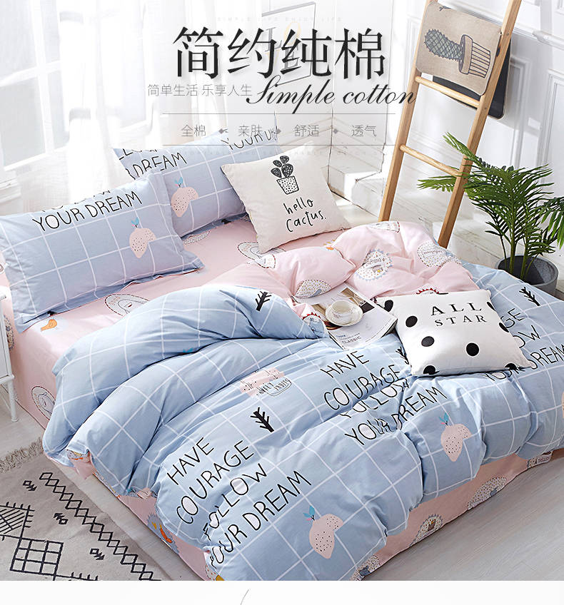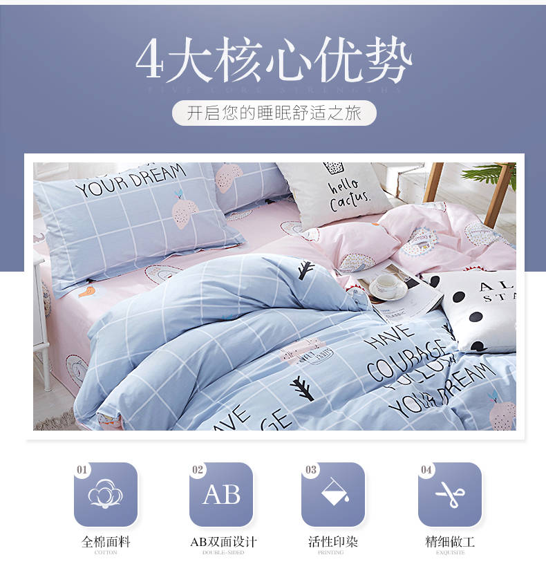 100%全棉四件套斜紋純棉床上用品被套床單3-4件套