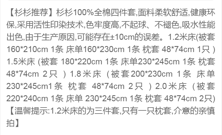 溫馨提示:1.2m床 【為 3 件 套,只有一個(gè)枕套,介意的慎拍 】