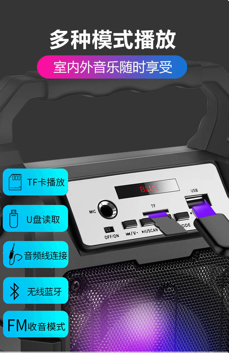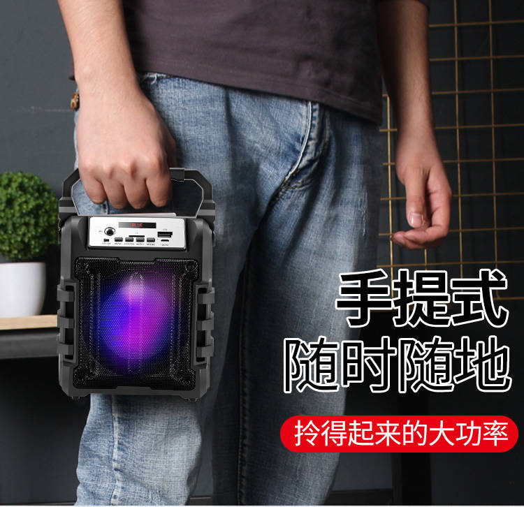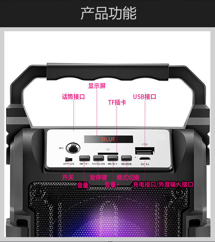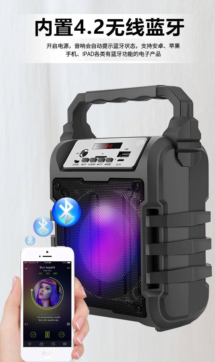 商品名稱:手提話筒音響 迷你低音炮 無線藍(lán)牙音箱 戶外便攜廣場舞