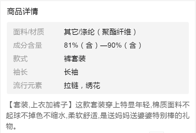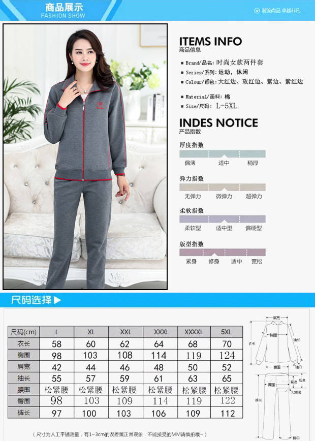商品名稱:運(yùn)動(dòng)套裝中年女士媽媽裝春款秋裝外套休閑運(yùn)動(dòng)服