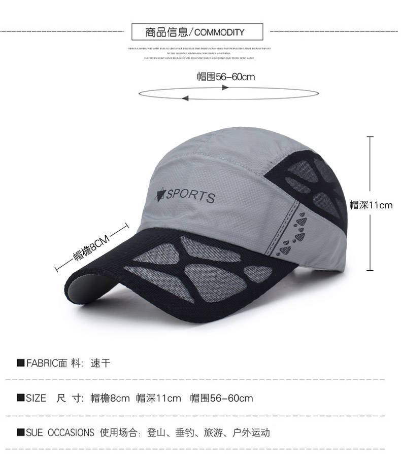 商品名稱:時尚百搭網(wǎng)球棒球帽速干薄款情侶帽戶外運動鴨舌帽