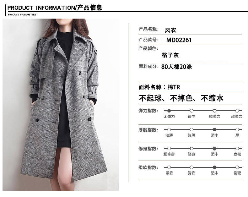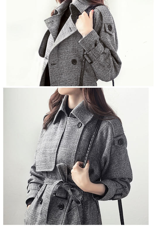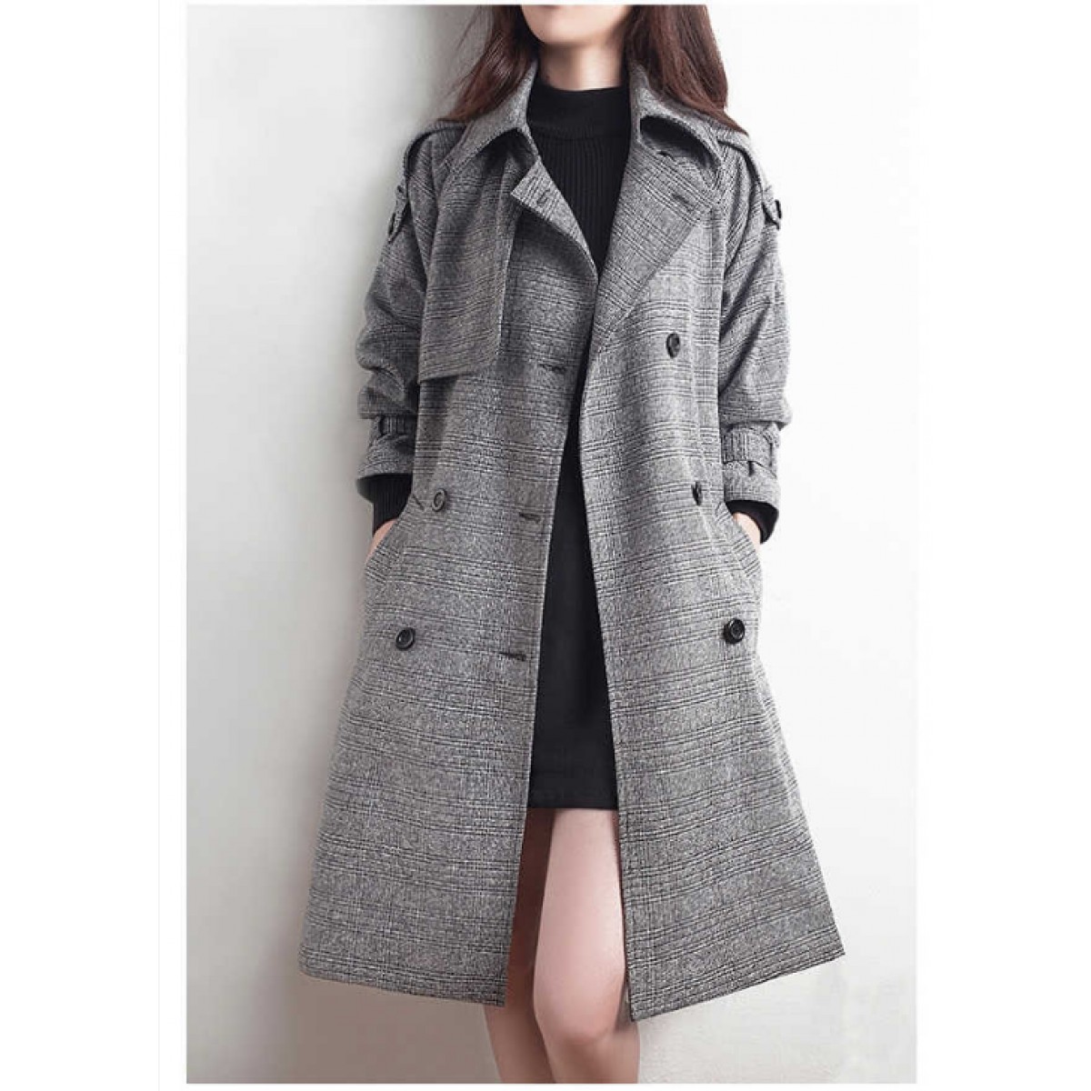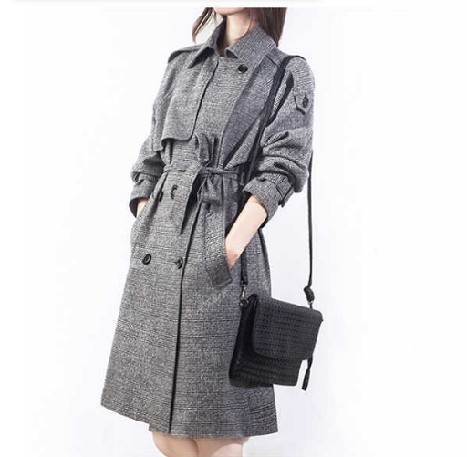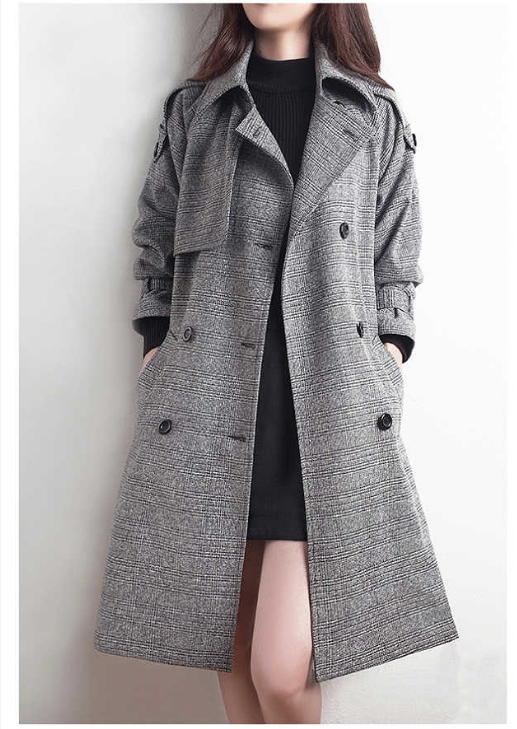 商品名稱:【好質(zhì)量雙排扣大衣】風(fēng)衣女春秋外套女韓版女裝中長(zhǎng)款修身格子