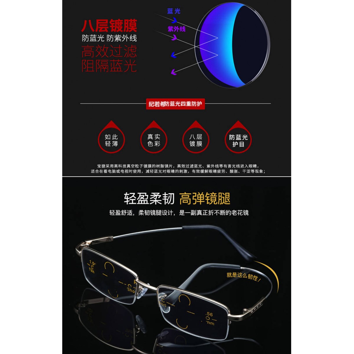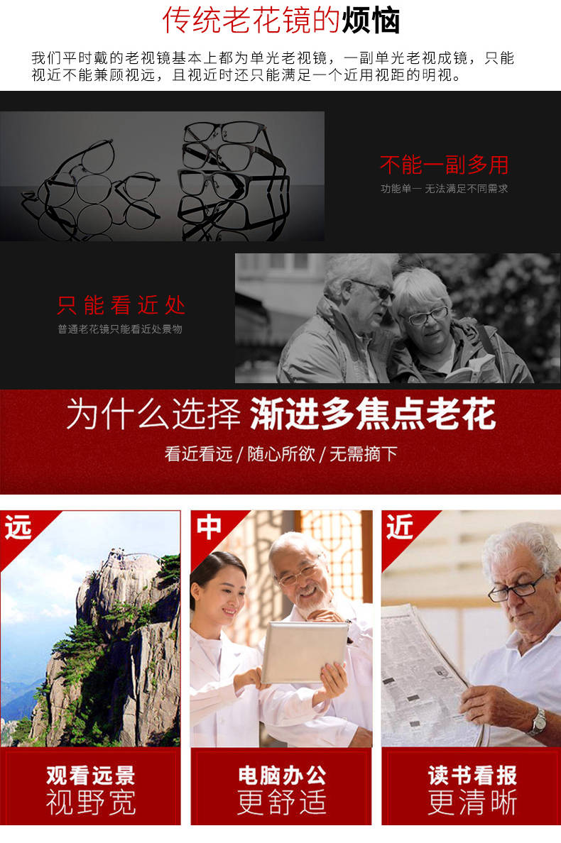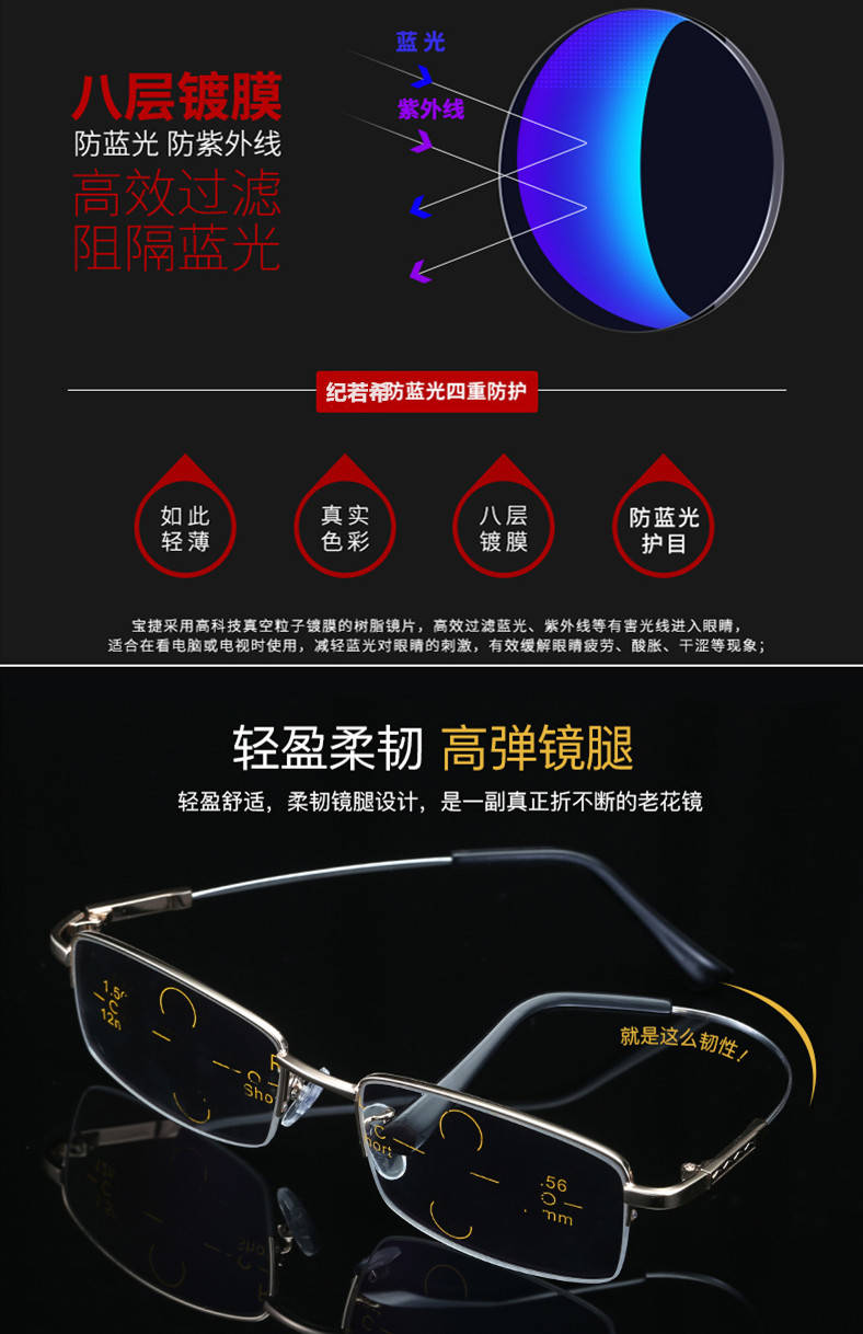 老花鏡 多焦點(diǎn) 防藍(lán)光 防輻射 耐磨