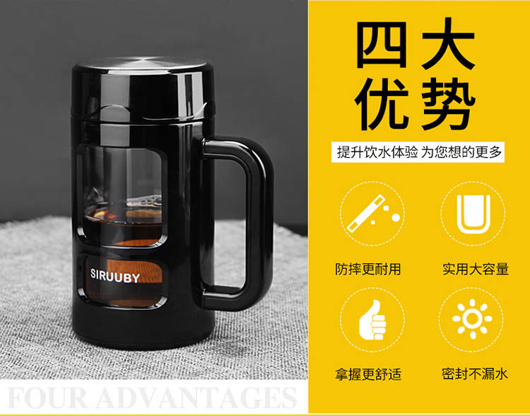 商品名稱:高檔玻璃杯凈品康男女過濾水杯耐熱防摔辦公杯茶杯子