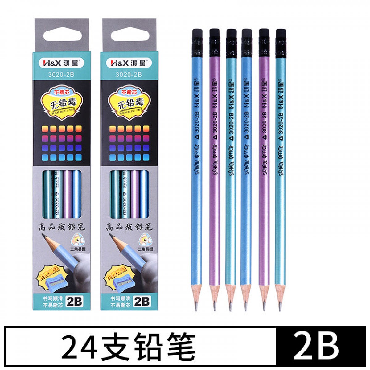 商品名稱:考試專用三角2b鉛筆套裝小學生兒童自動筆素描無毒文具