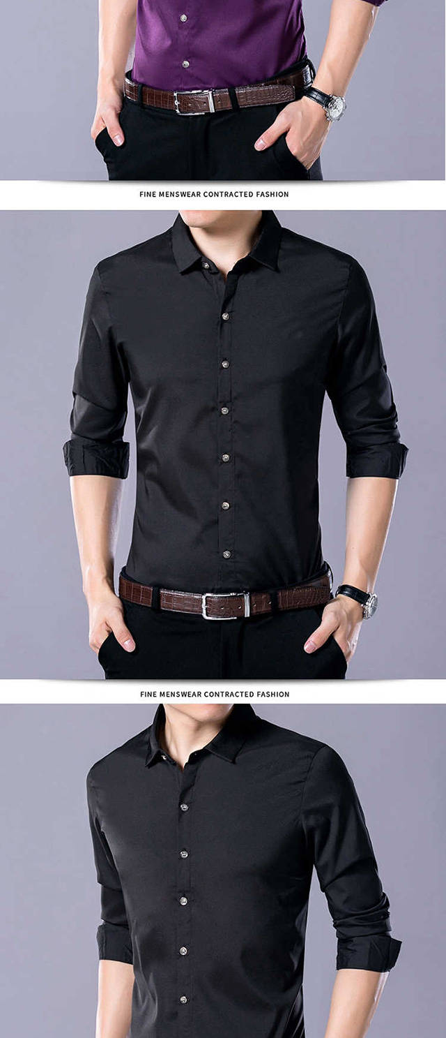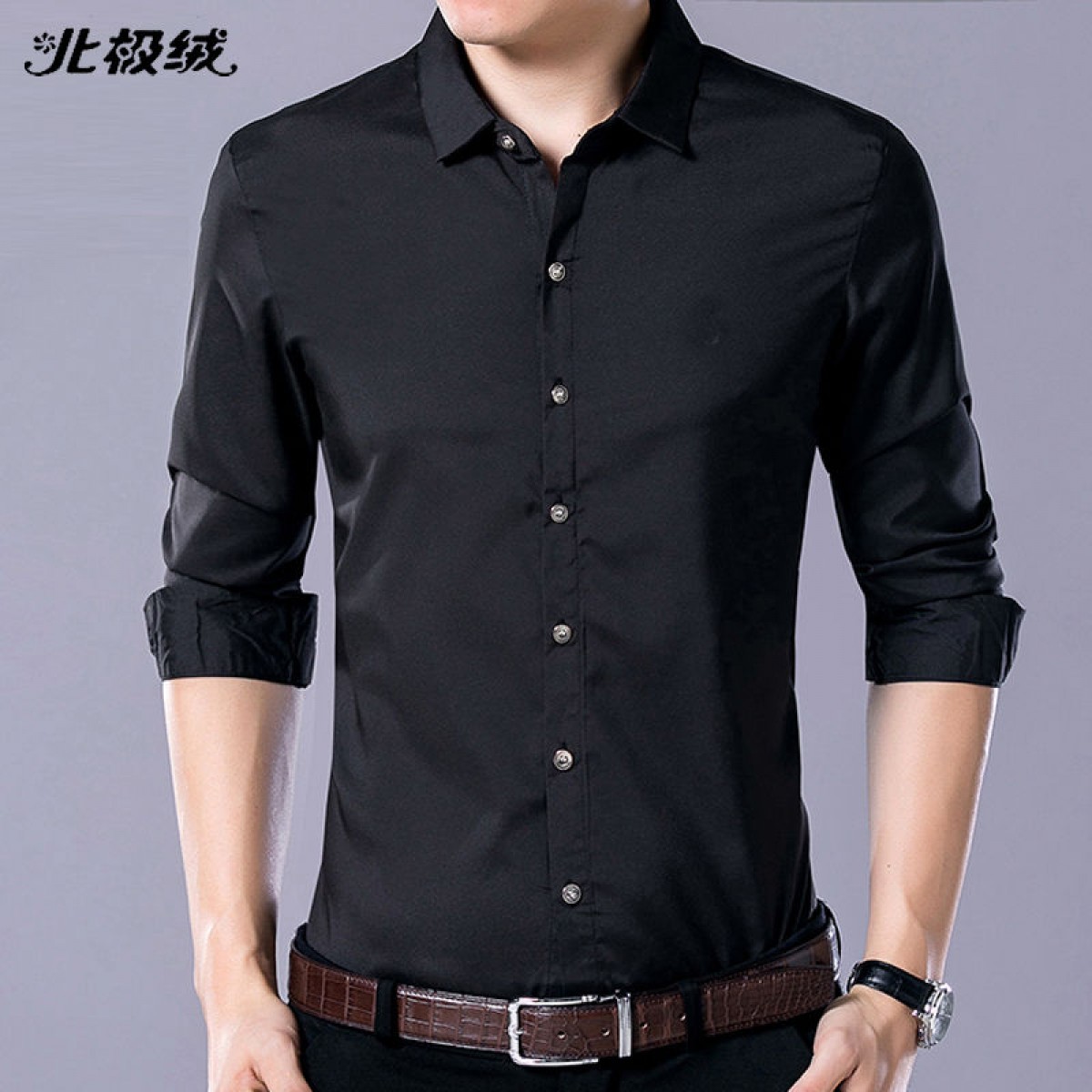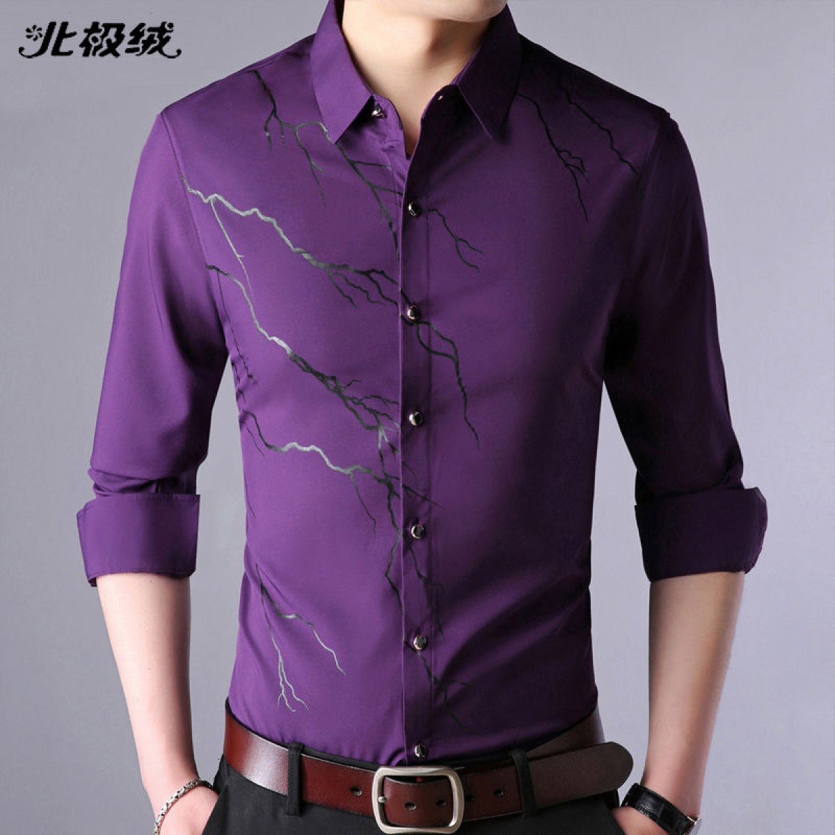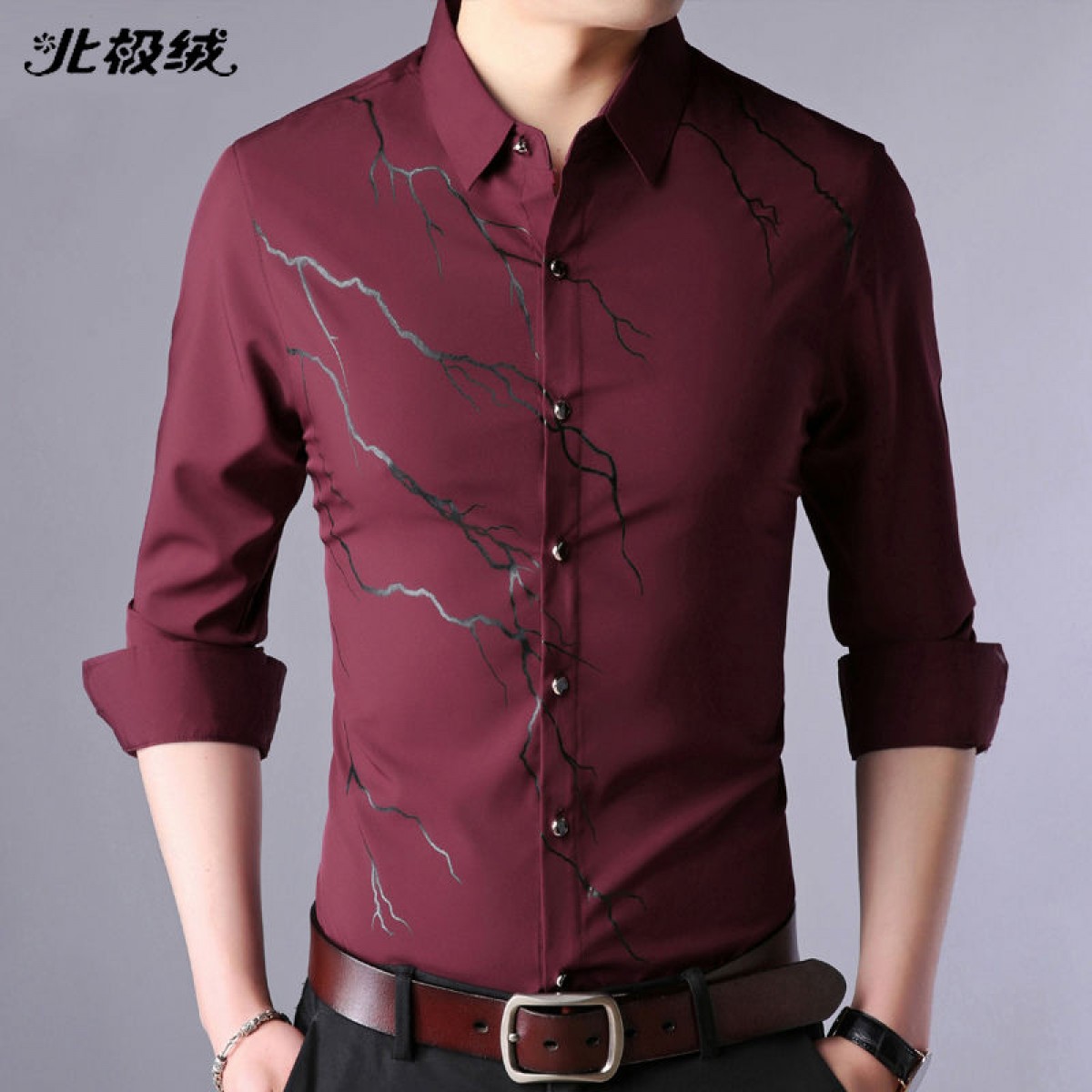 北極絨春秋新款翻領(lǐng)襯衫長(zhǎng)袖免燙加厚襯衣男士印花商務(wù)休閑