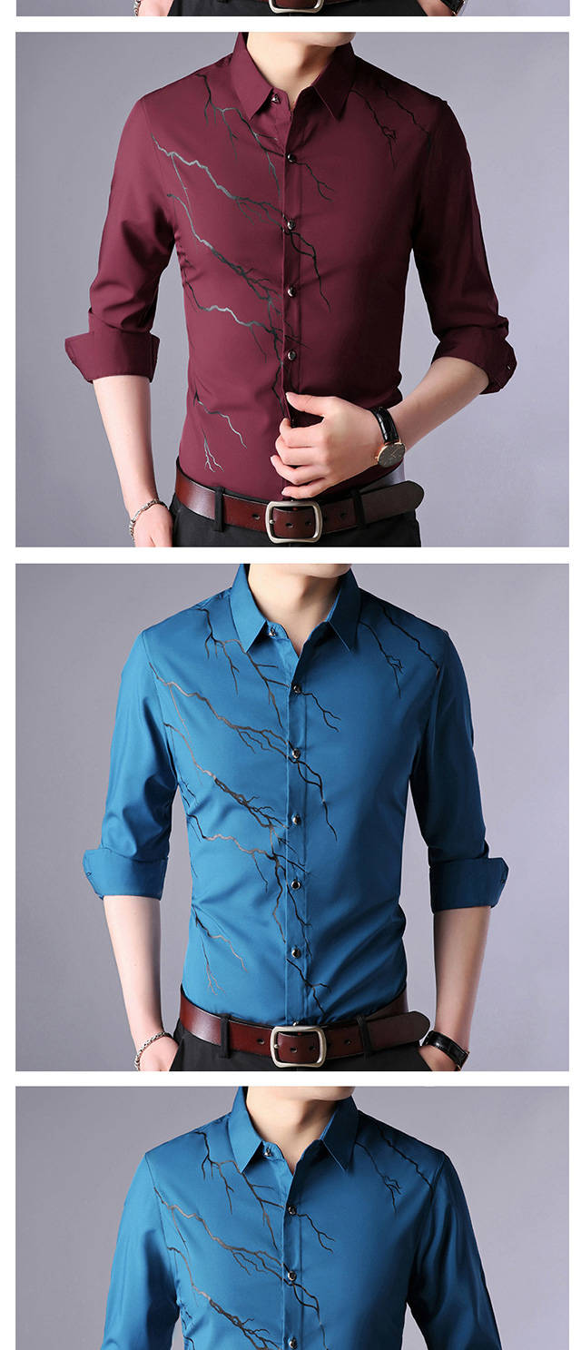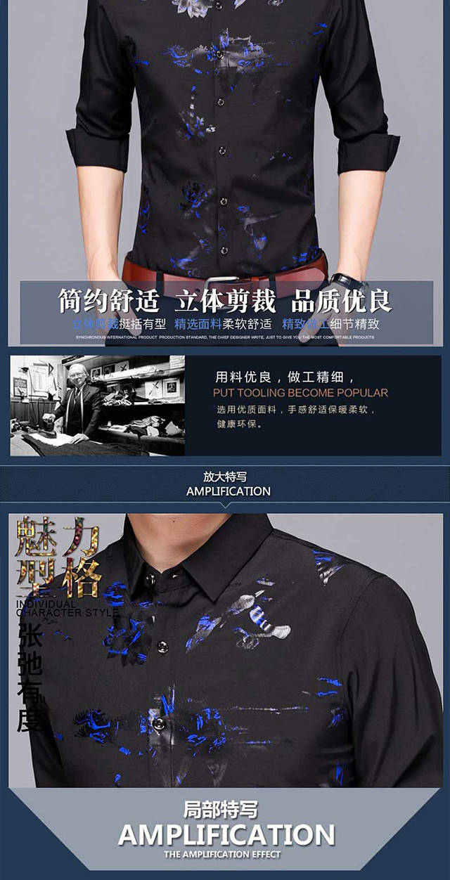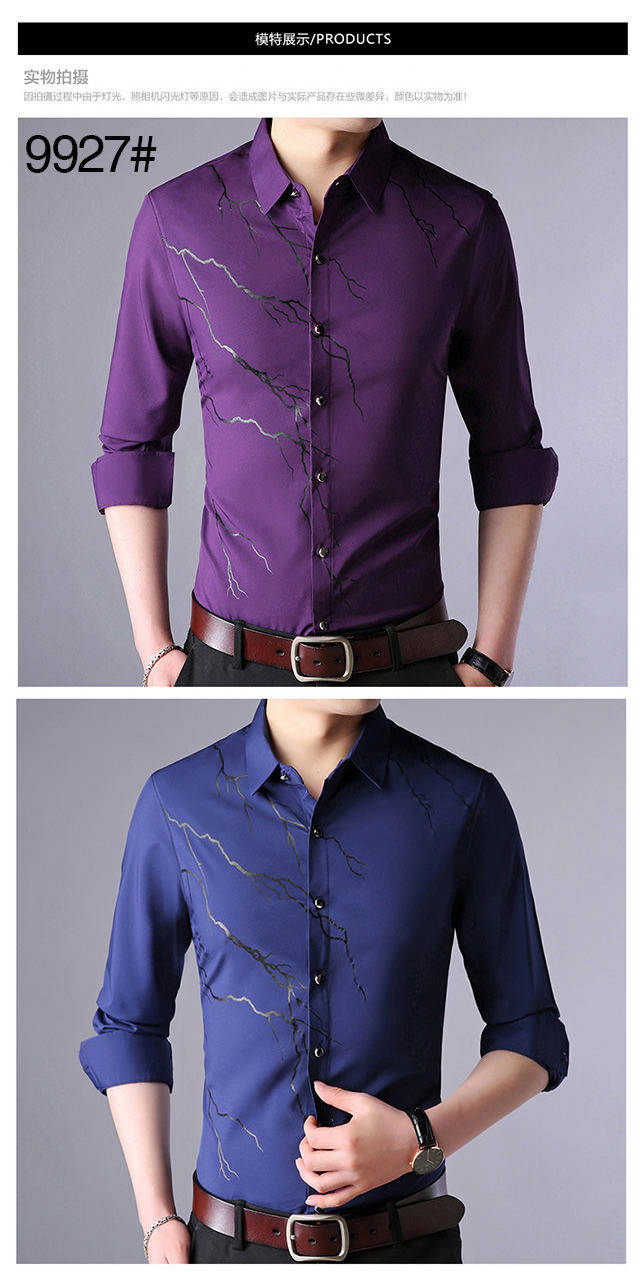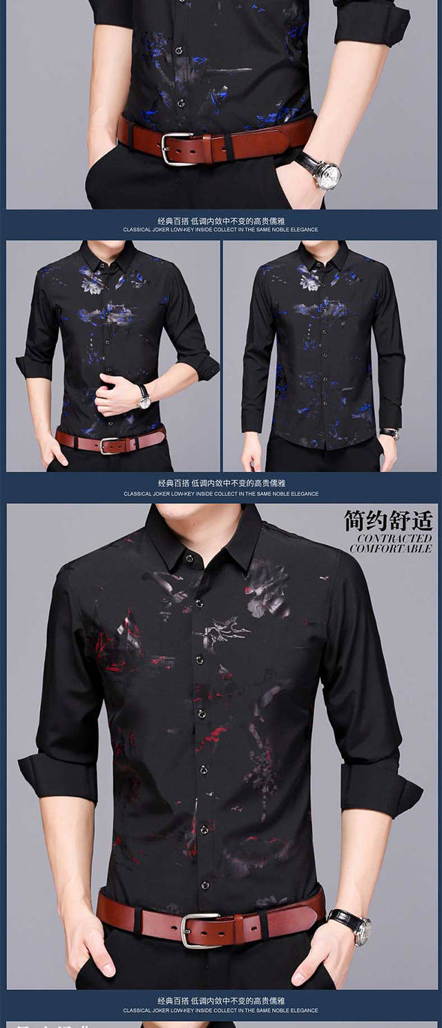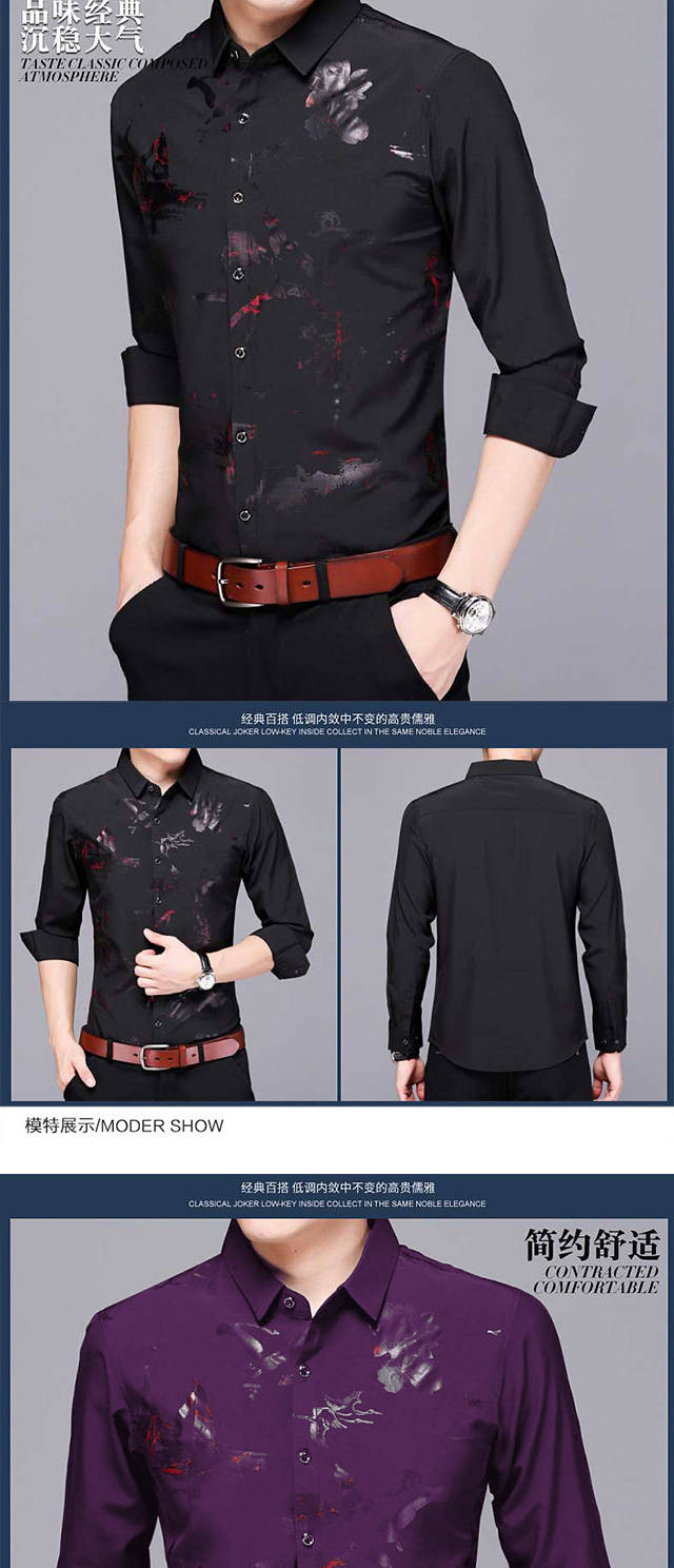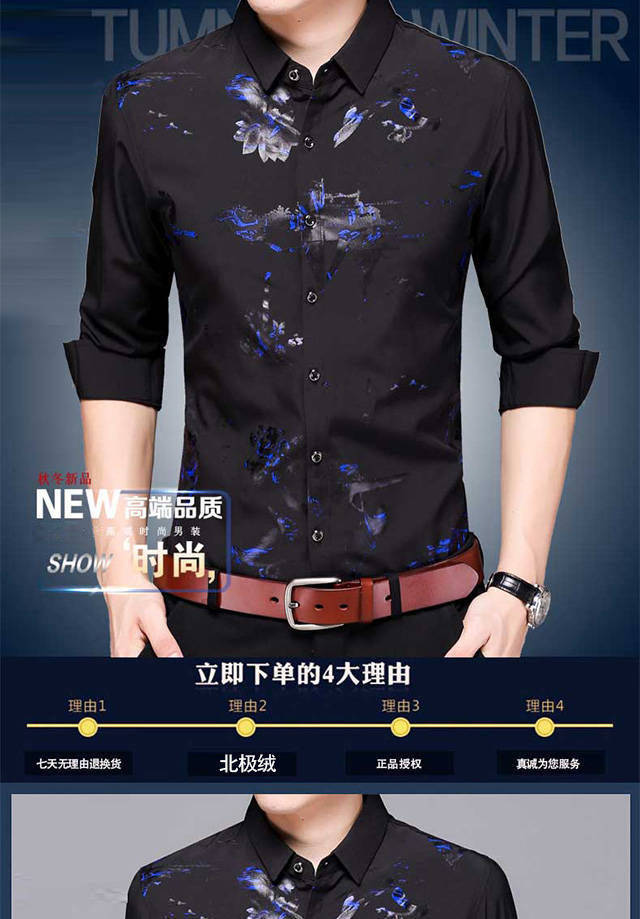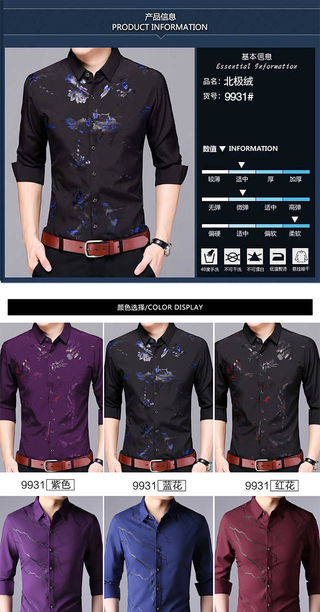商品名稱:北極絨春秋新款翻領(lǐng)襯衫長(zhǎng)袖免燙加厚襯衣男士印花商務(wù)休閑