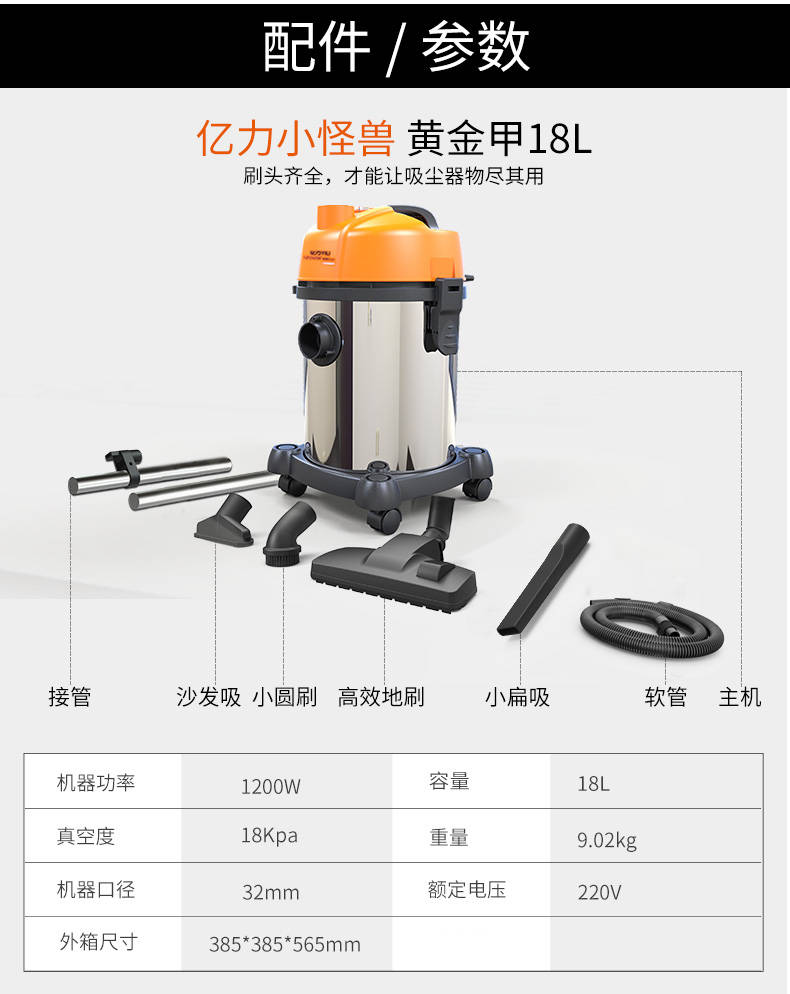 商品名稱:家用小型強(qiáng)力大功率手持式地毯靜音干濕吹桶式吸塵器