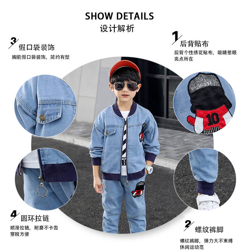 商品名稱:2019新款兒童裝男童套裝秋裝中大童牛仔套裝童裝男孩衣服春秋季潮