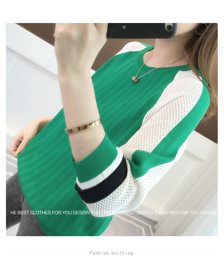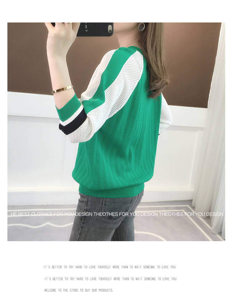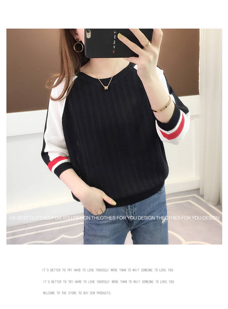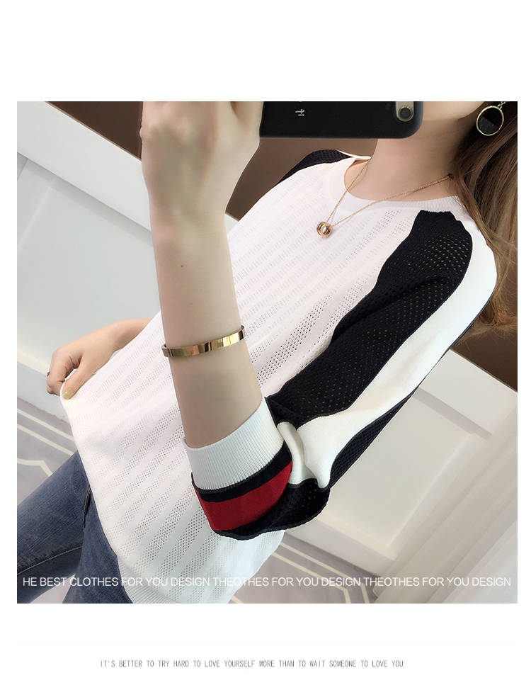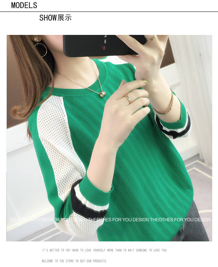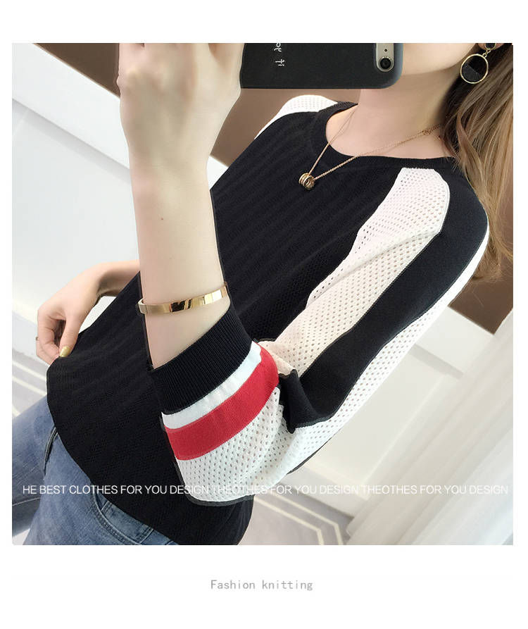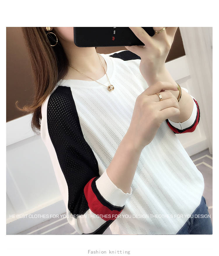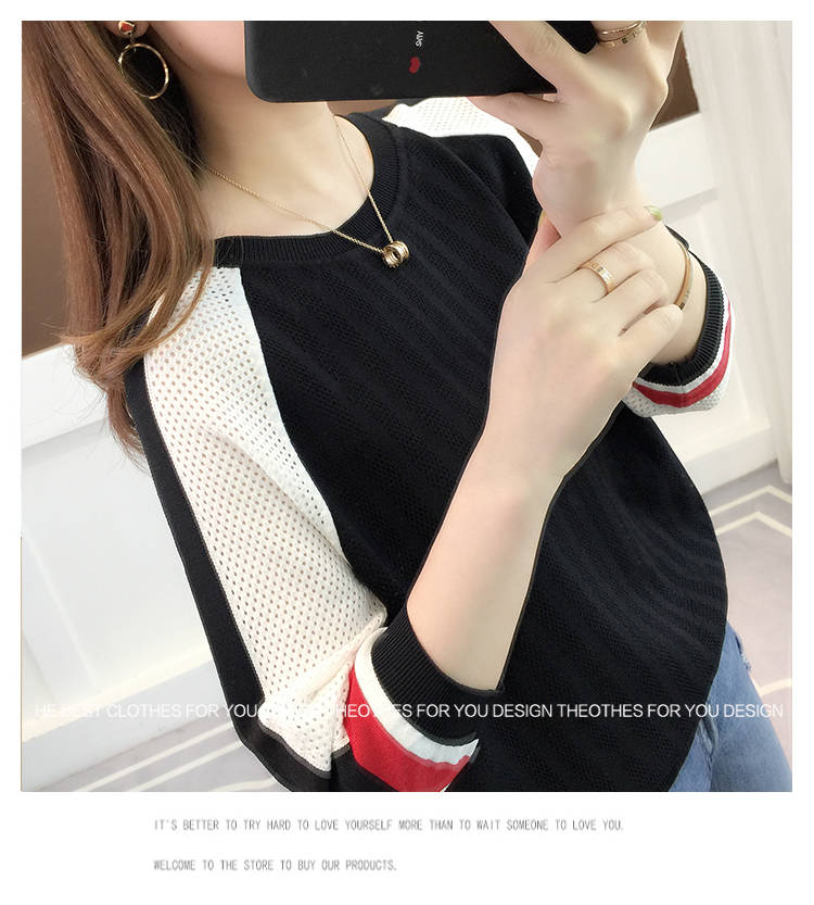 商品名稱:2019秋裝新款洞洞毛衣中袖上衣鏤空針織薄款冰絲打底衫女寬松韓版