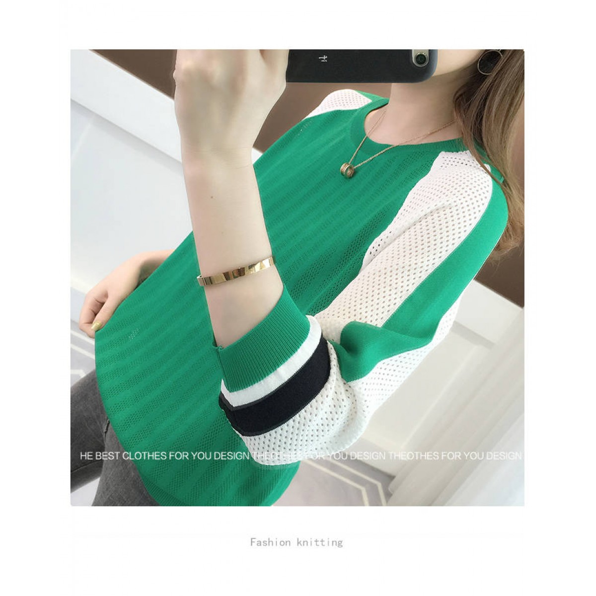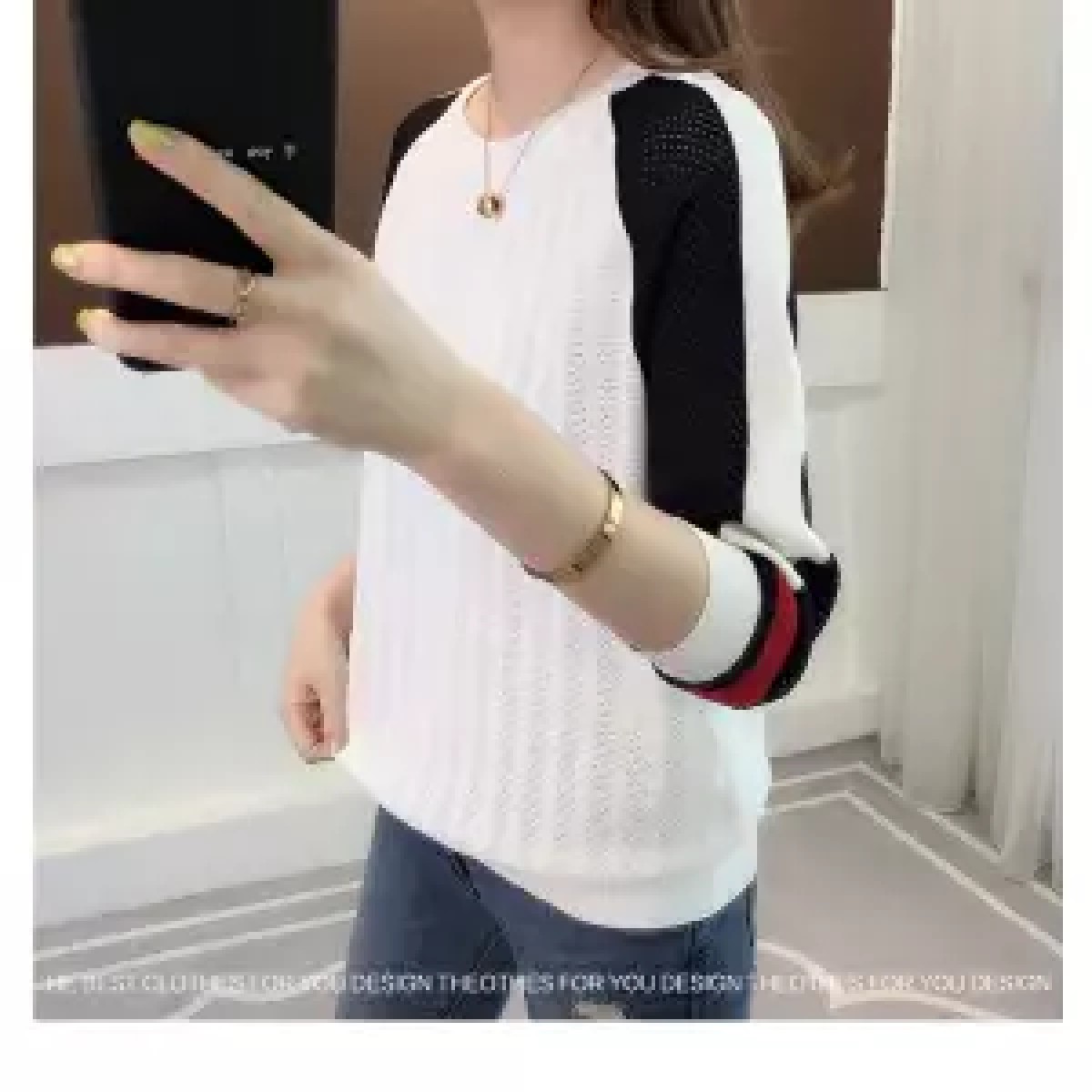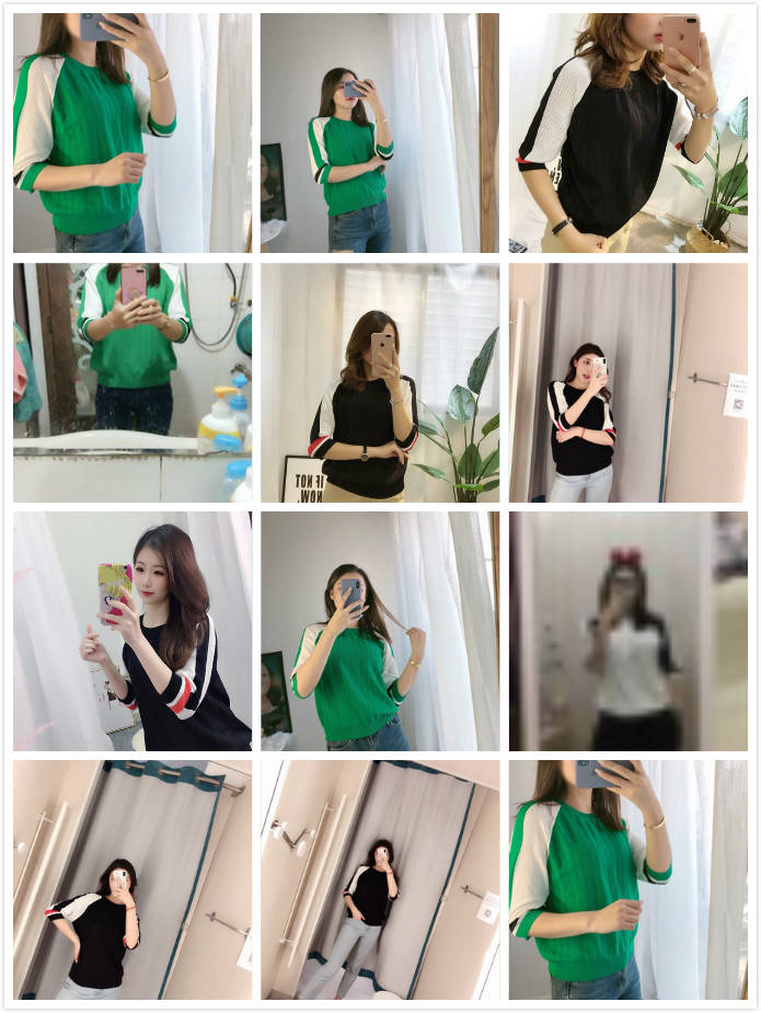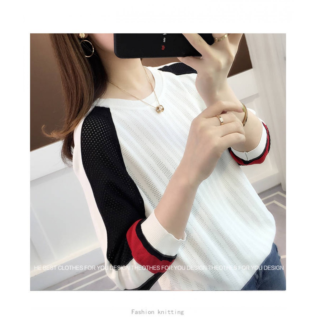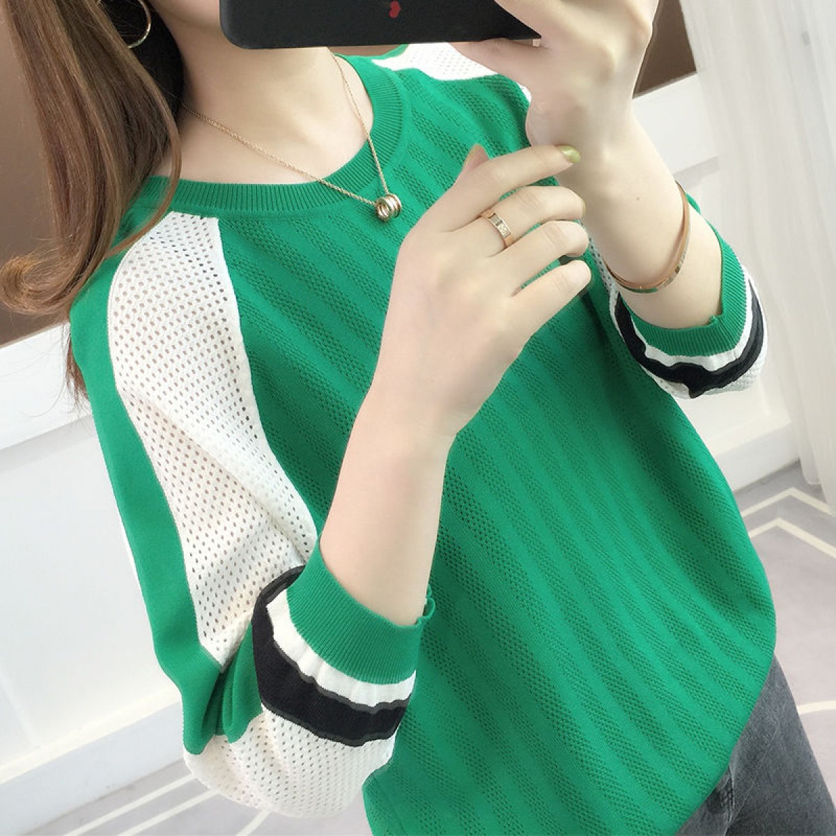 商品名稱:2019秋裝新款洞洞毛衣中袖上衣鏤空針織薄款冰絲打底衫女寬松韓版