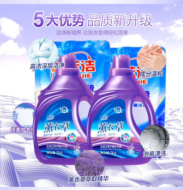 商品名稱:正品超值洗衣液袋裝薰衣草香味持久留香低泡易漂家庭裝批發(fā)
