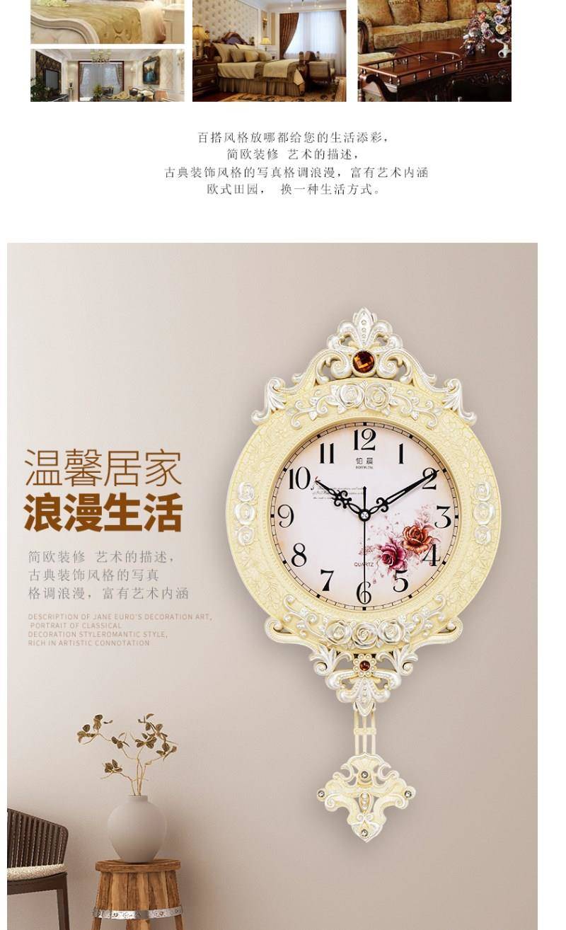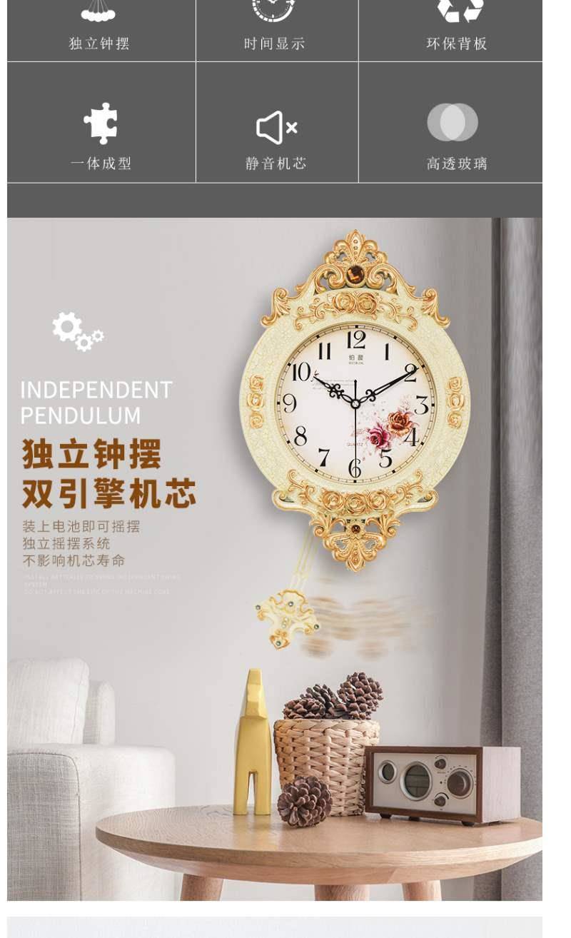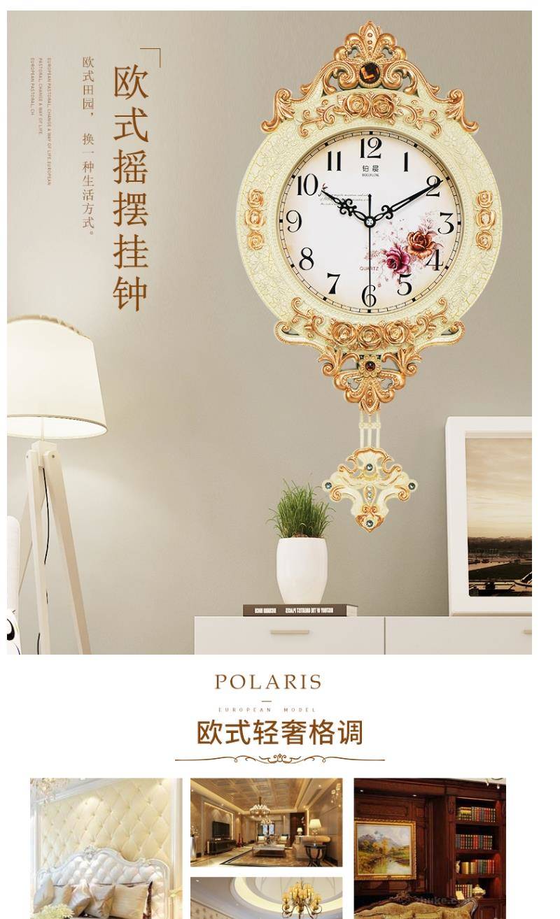 商品名稱:歐式創(chuàng)意客廳靜音掛鐘時(shí)尚藝術(shù)石英鐘時(shí)鐘臥室壁搖擺豪華鐘表