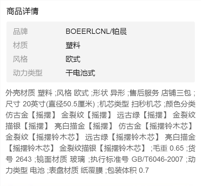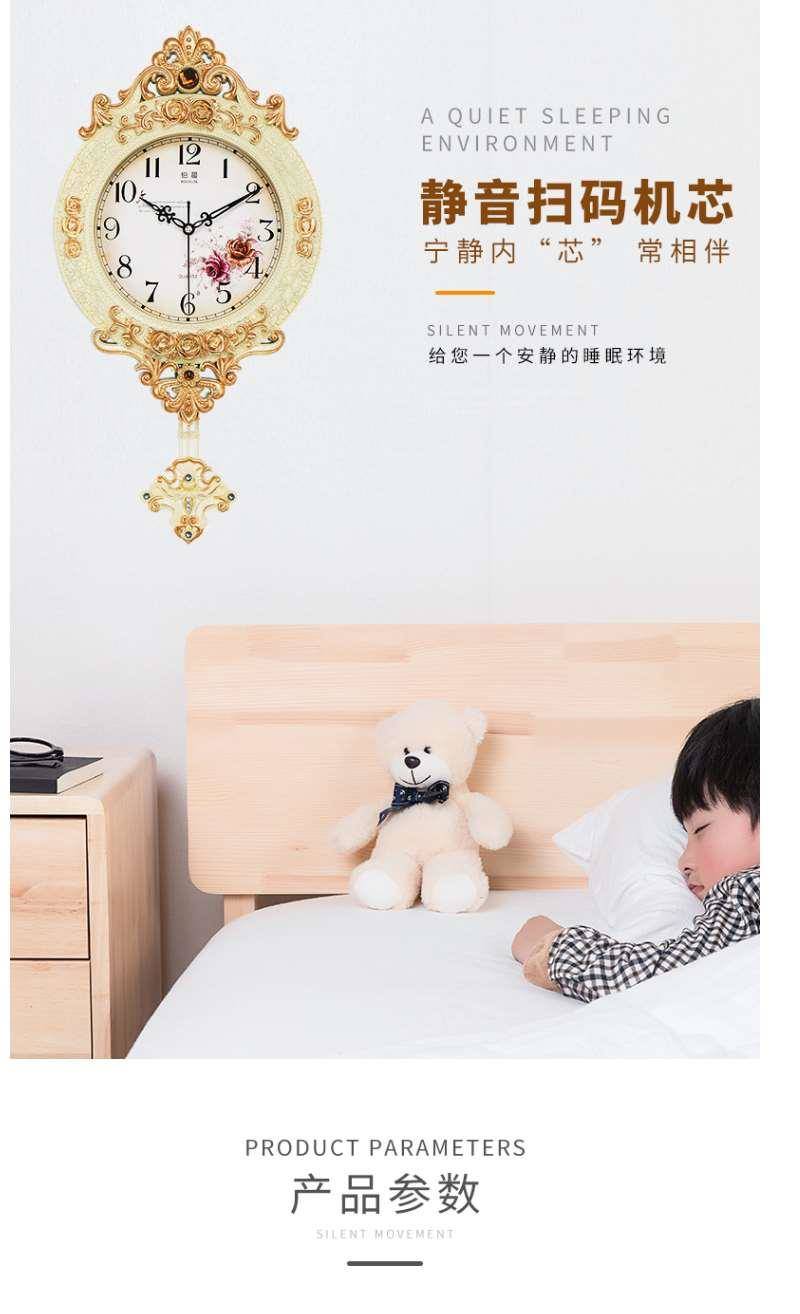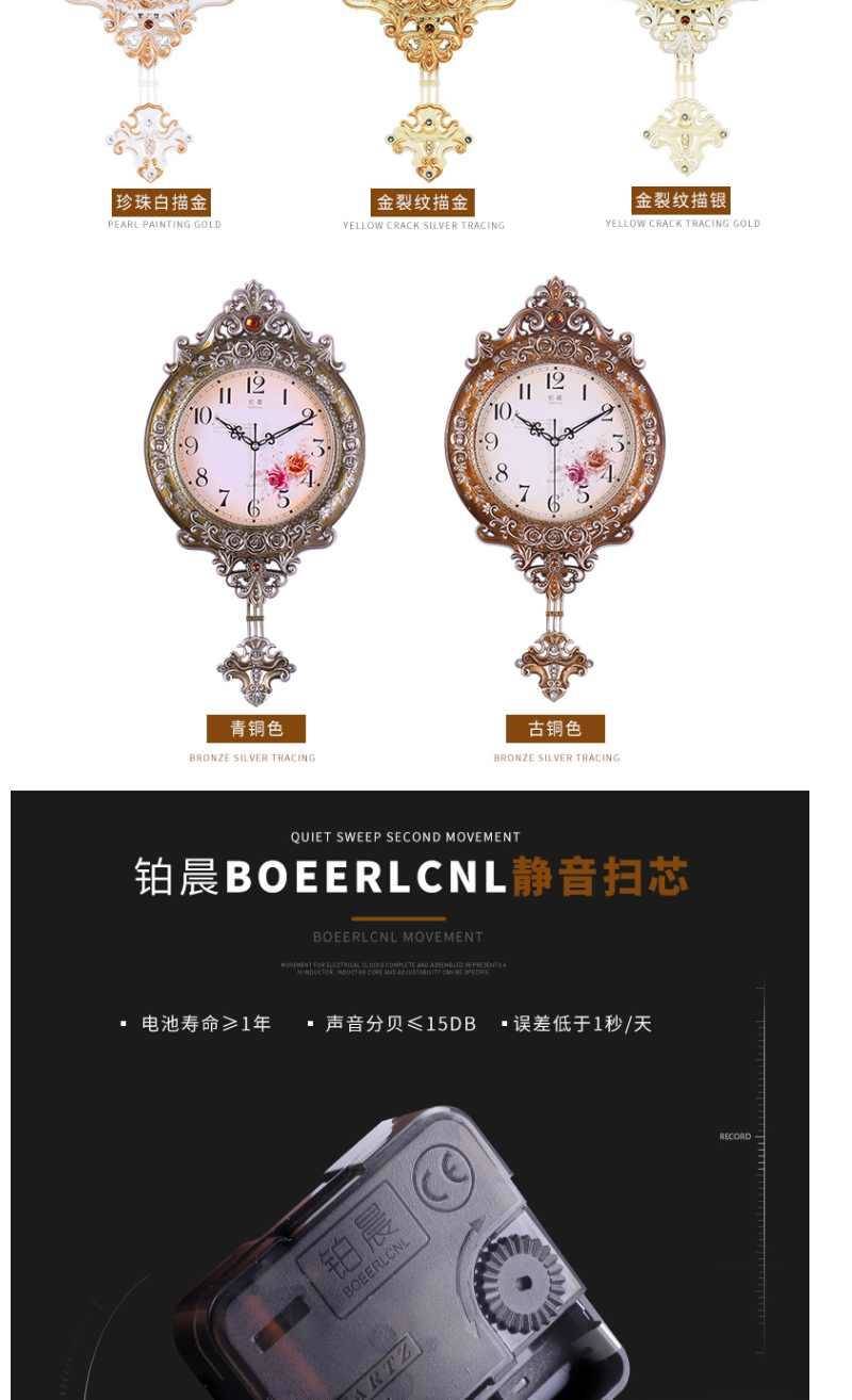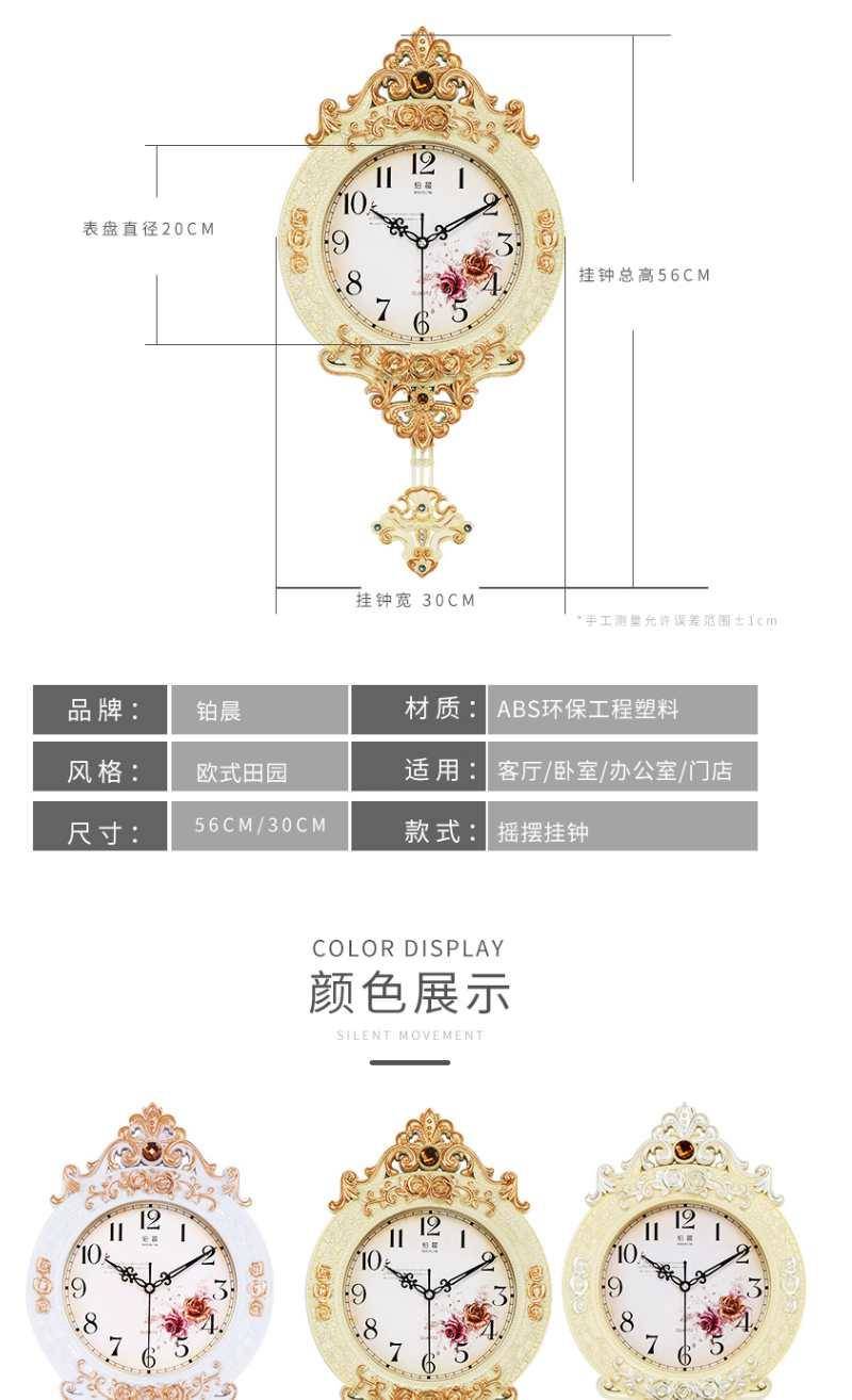 商品名稱:歐式創(chuàng)意客廳靜音掛鐘時(shí)尚藝術(shù)石英鐘時(shí)鐘臥室壁搖擺豪華鐘表