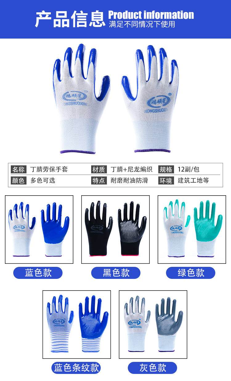 商品名稱:【正品12-60雙裝】工作耐磨防滑橡膠膠皮耐磨批發(fā)工地勞保手套