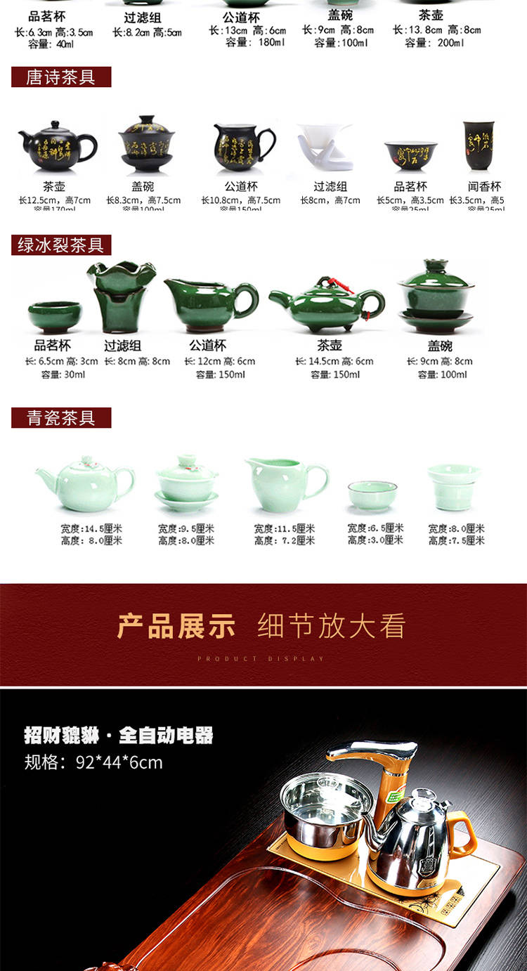 商品名稱:全自動家用整套功夫茶具套裝陶瓷玻璃茶壺茶杯茶道實木茶臺茶盤
