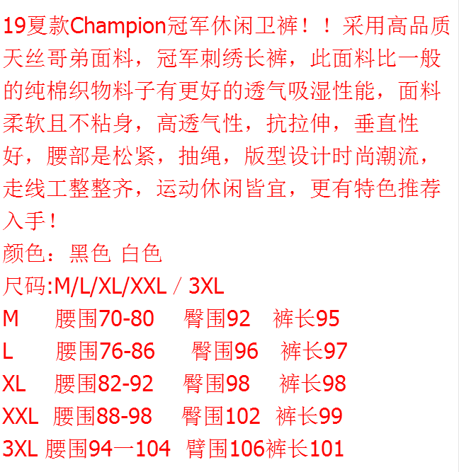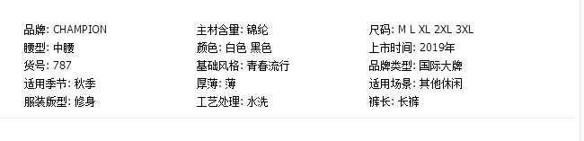 商品名稱:日版champion褲子男修身刺繡logo秋長褲薄款情侶款運動褲女