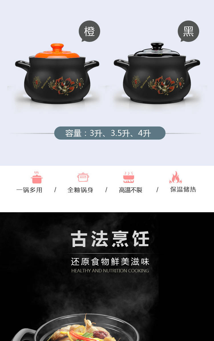 商品名稱:陶瓷煲湯砂鍋燉鍋家用燃氣鍋明火耐高溫瓦罐養(yǎng)生煲包郵
