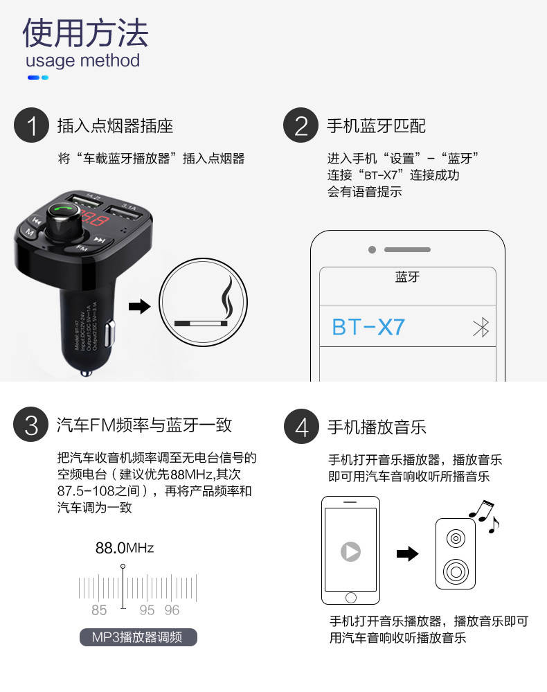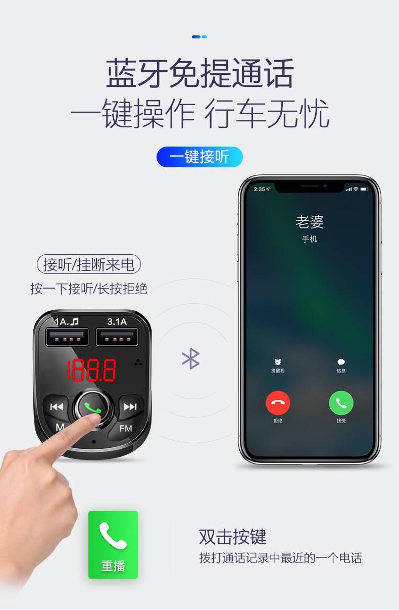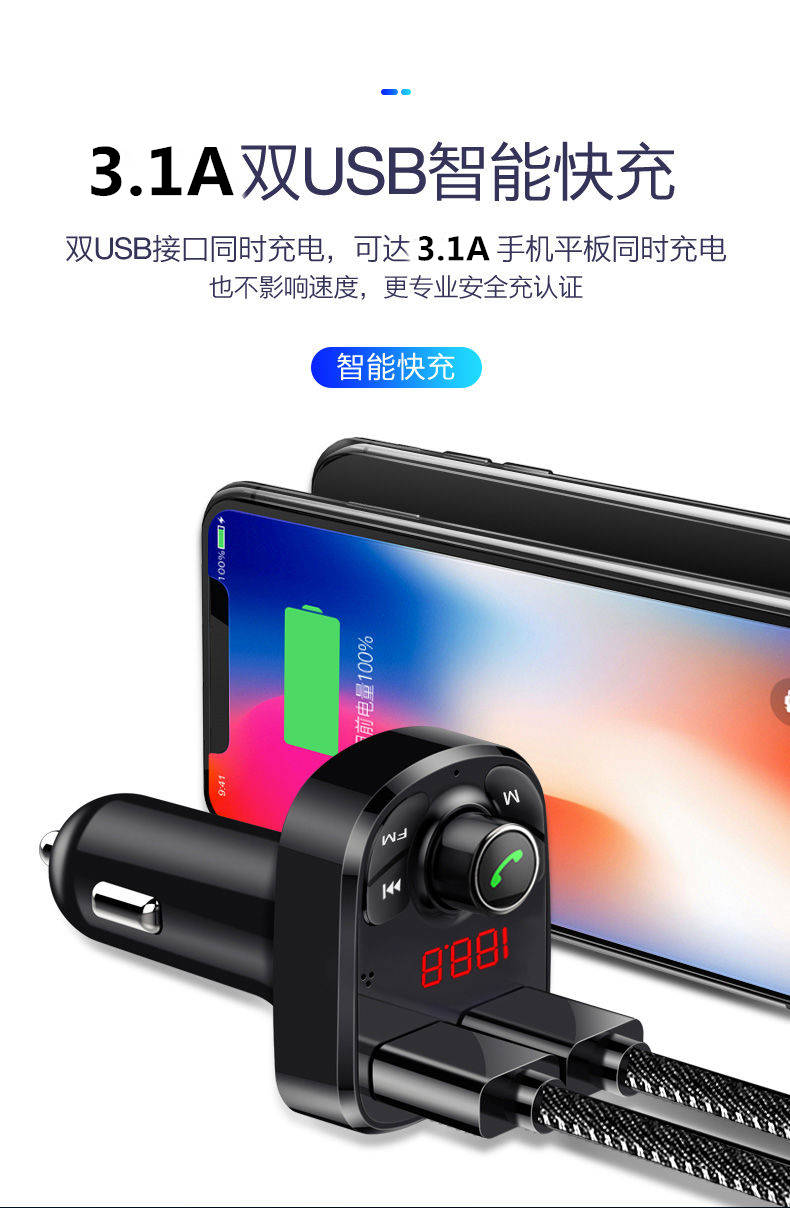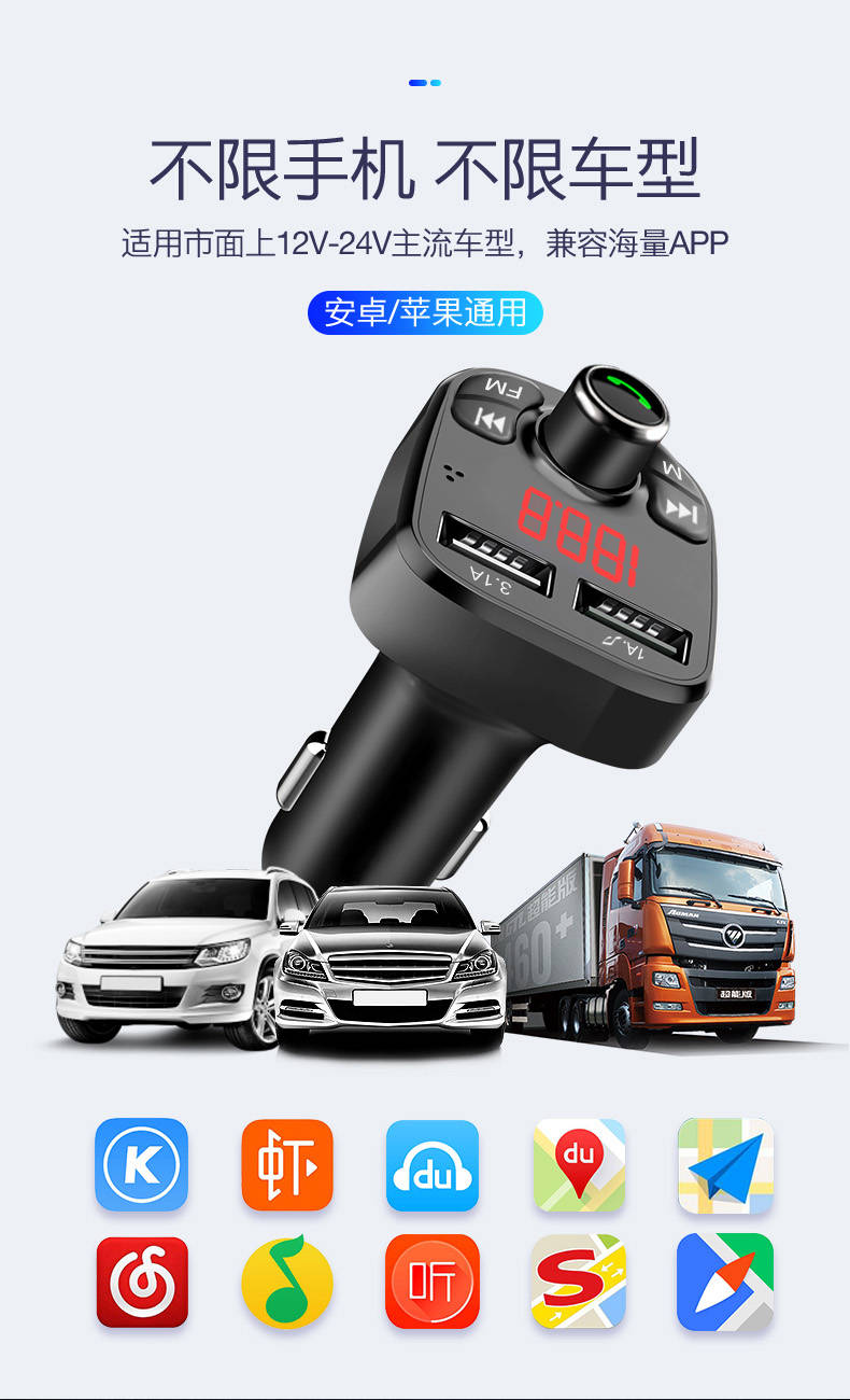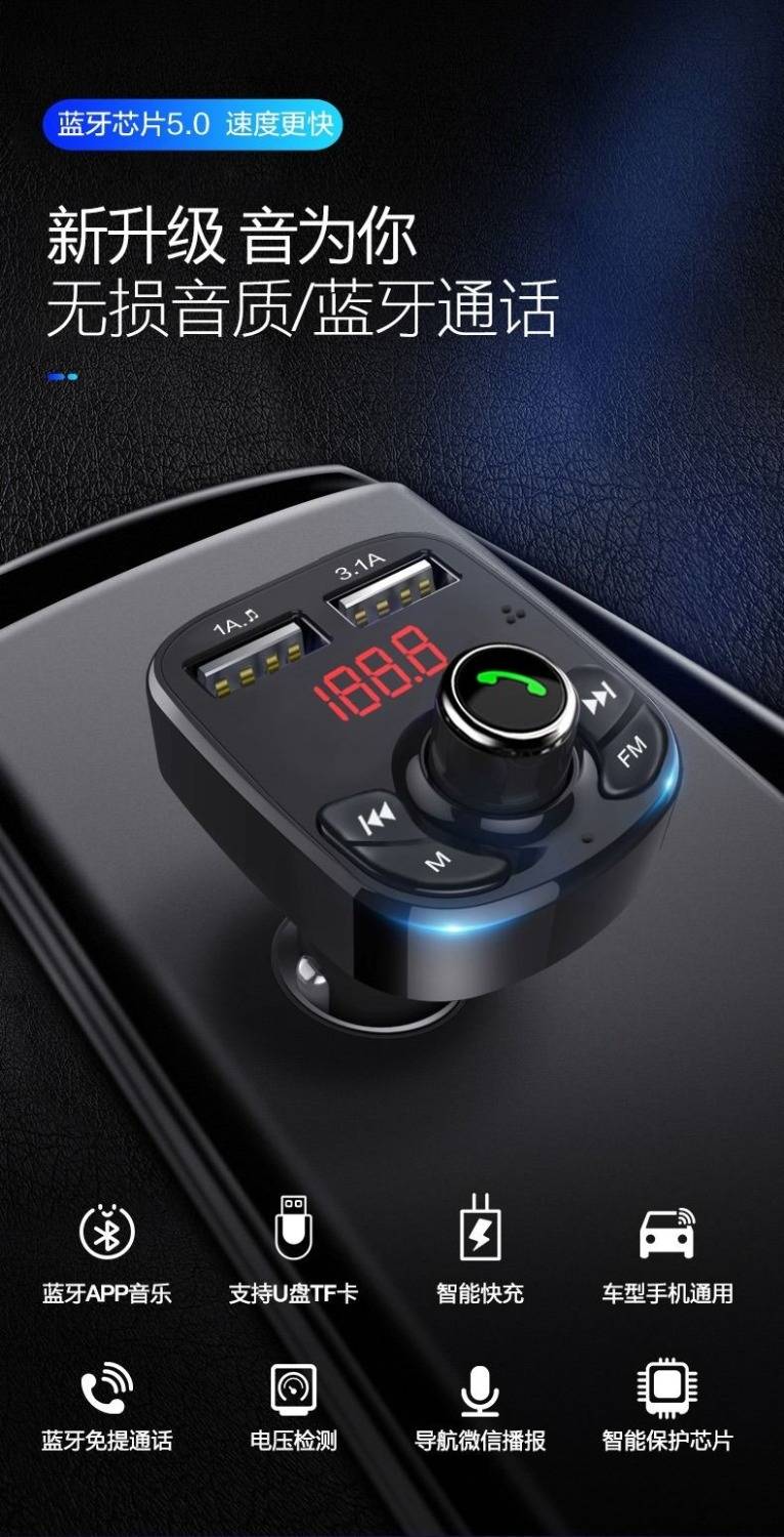 商品名稱:車載MP3播放器汽車藍(lán)牙免提手機導(dǎo)航通話雙usb快充汽車用品