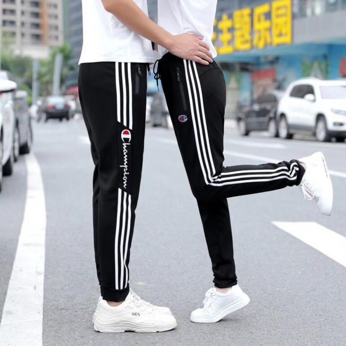 日版champion冠軍束腳三條杠字母長褲運動褲情侶款休閑褲子