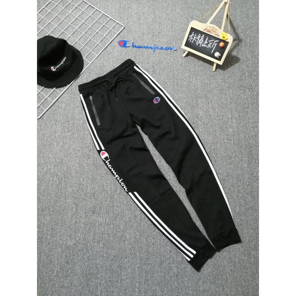 商品名稱:日版champion冠軍束腳三條杠字母長褲運動褲情侶款休閑褲子