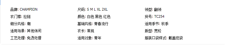 商品名稱:日版冠軍Champion夾克男女長袖外套男開衫情侶款寬松立領(lǐng)外套潮牌