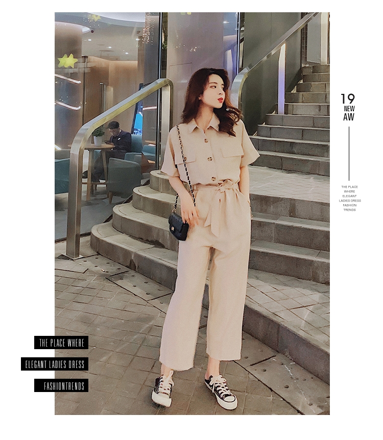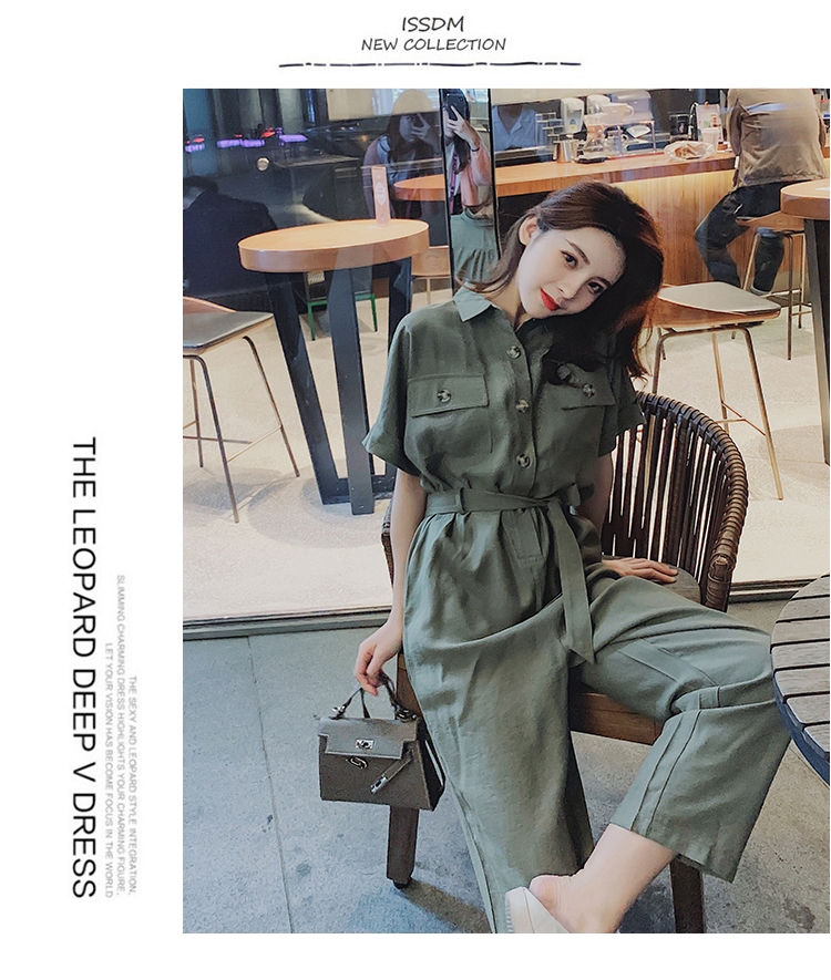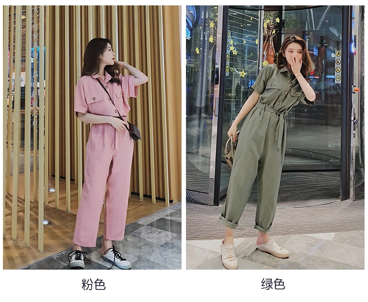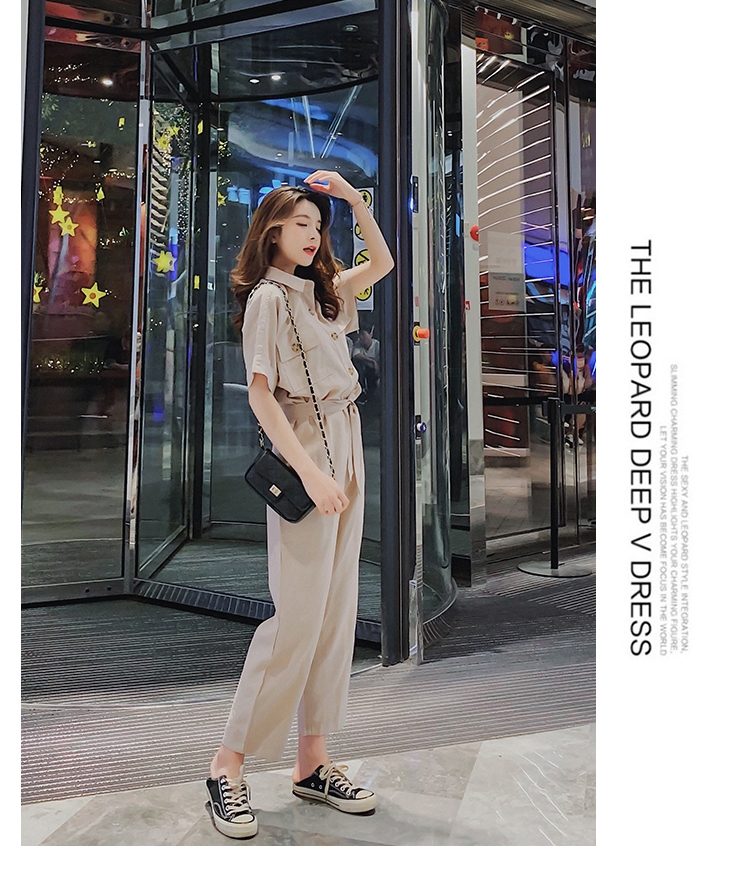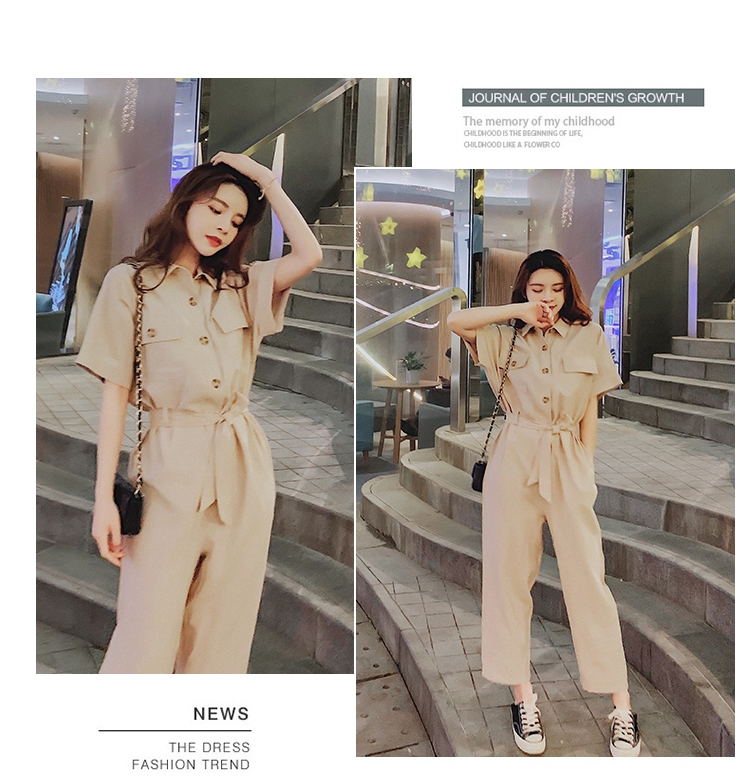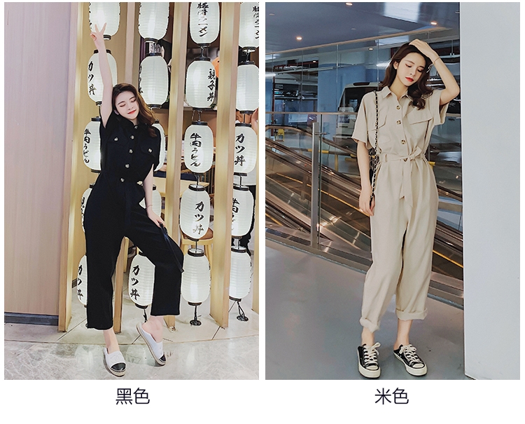 商品名稱(chēng):女新款時(shí)尚連體褲休閑高腰顯瘦工裝連衣褲九分闊腿褲套裝