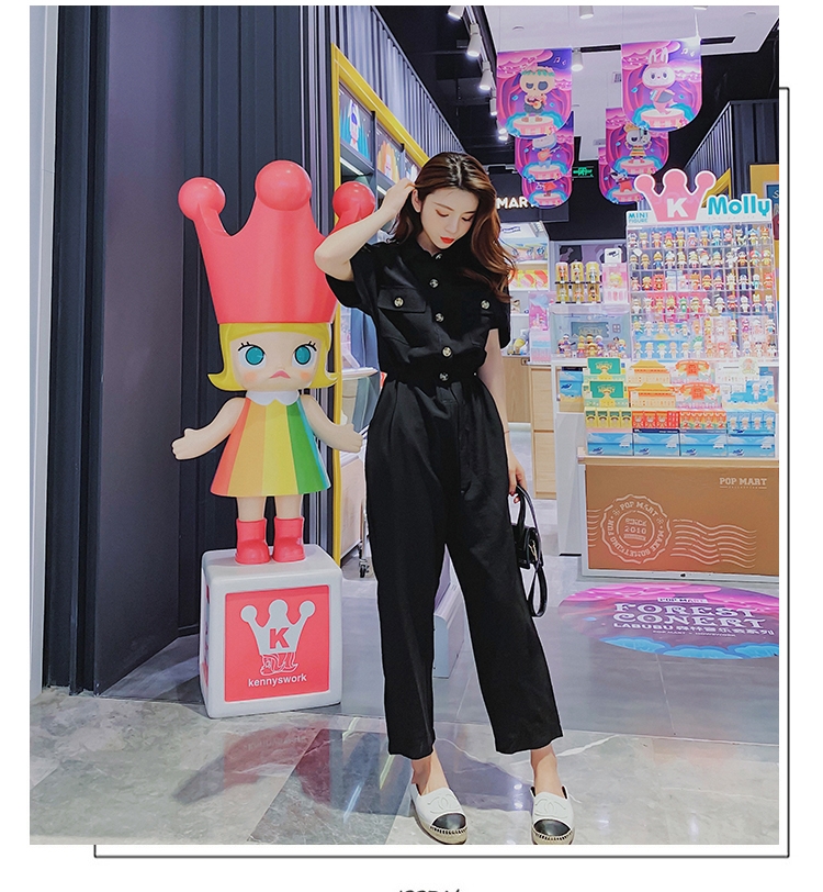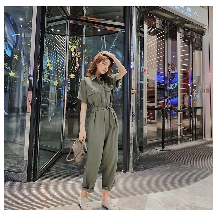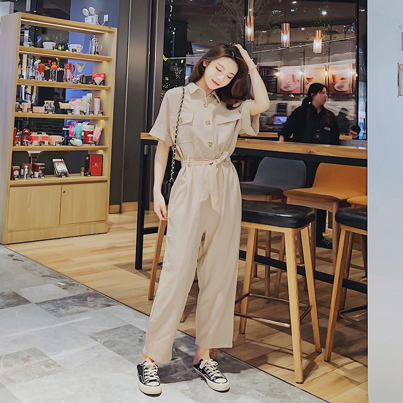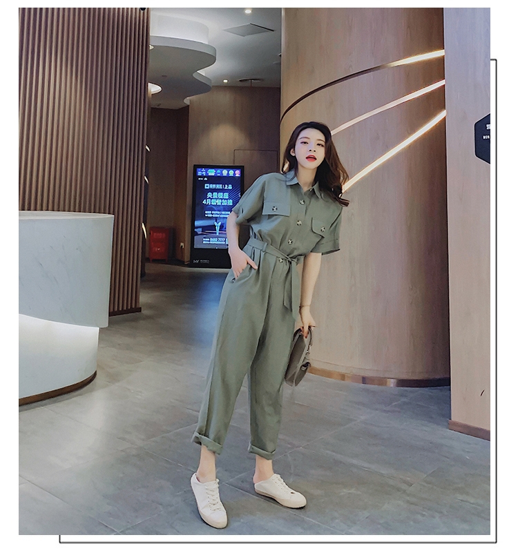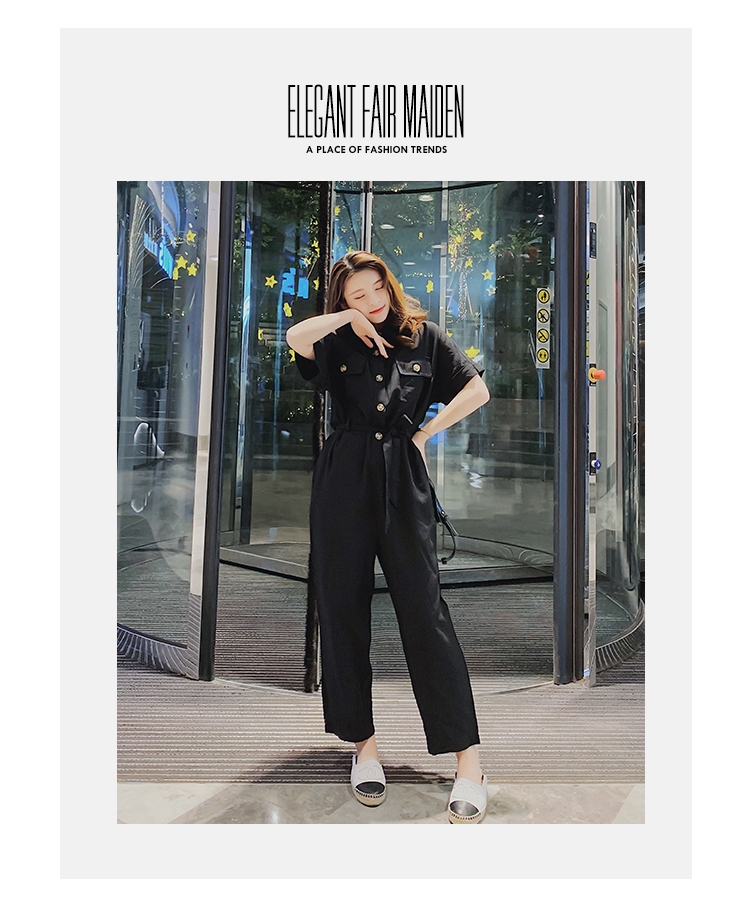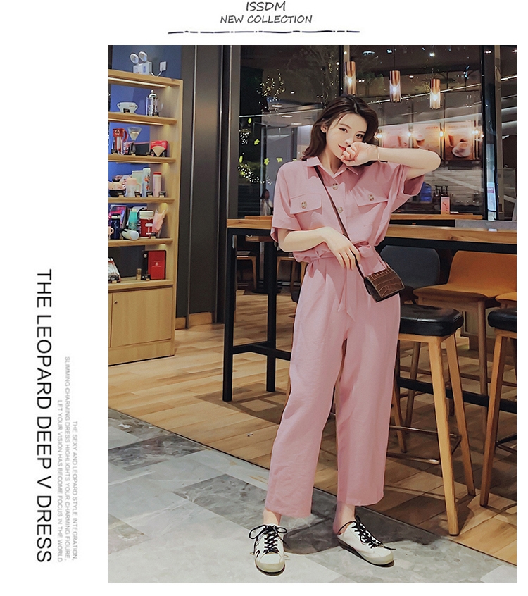 商品名稱(chēng):女新款時(shí)尚連體褲休閑高腰顯瘦工裝連衣褲九分闊腿褲套裝