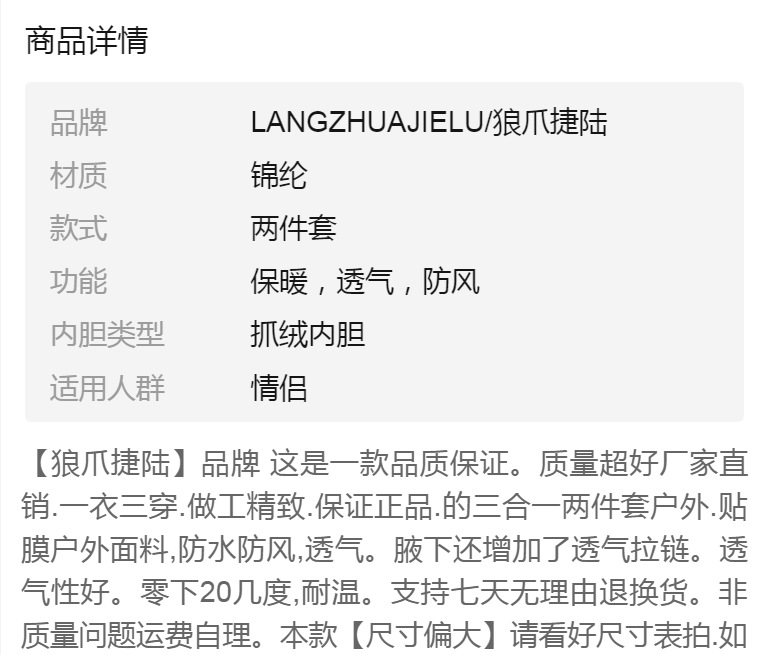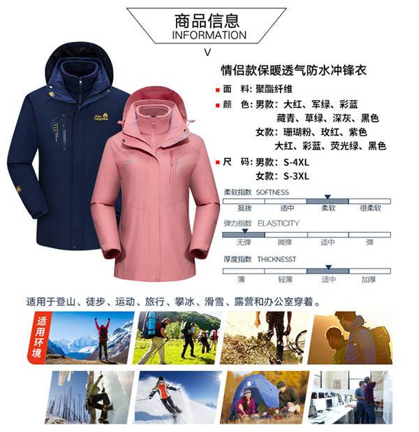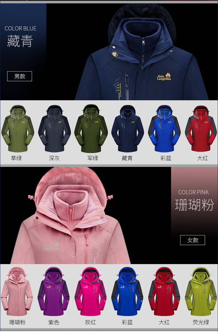 商品名稱:秋冬正品戶外沖鋒衣男女三合一兩件套防風(fēng)防水可拆卸內(nèi)膽
