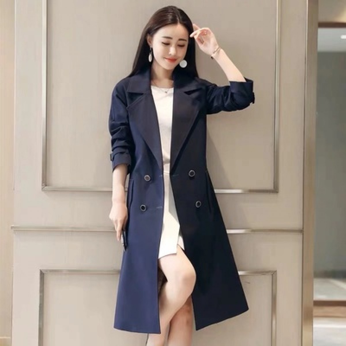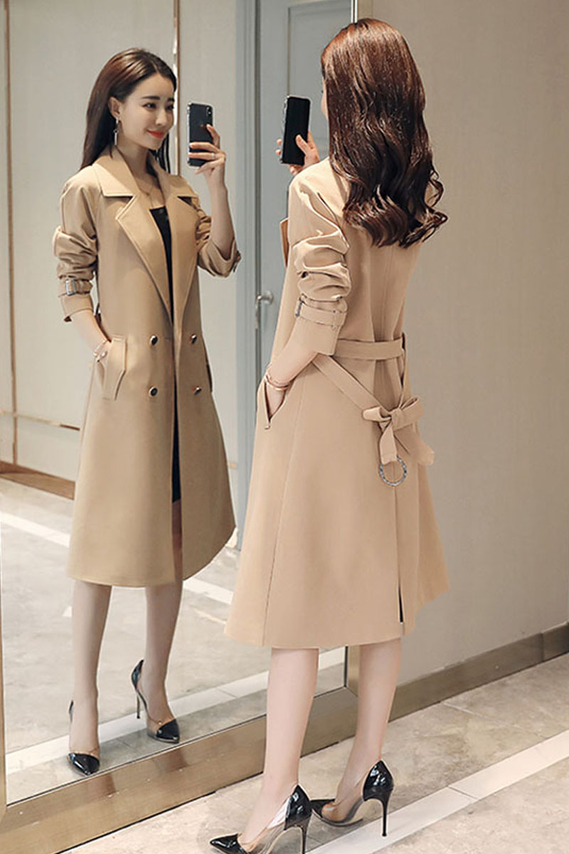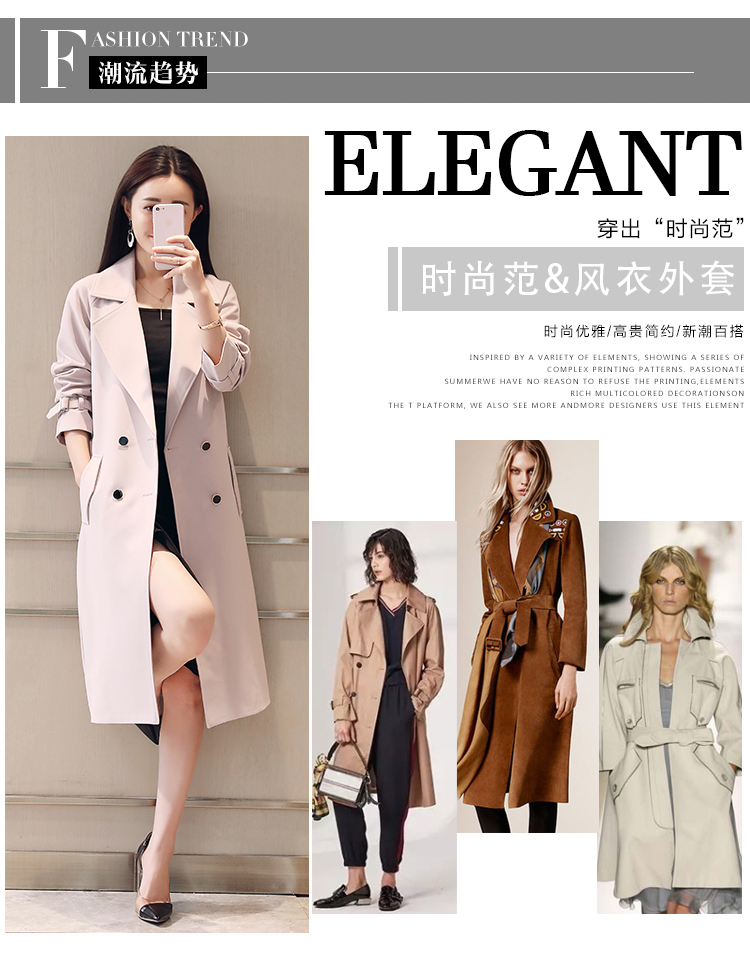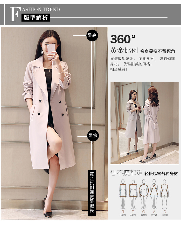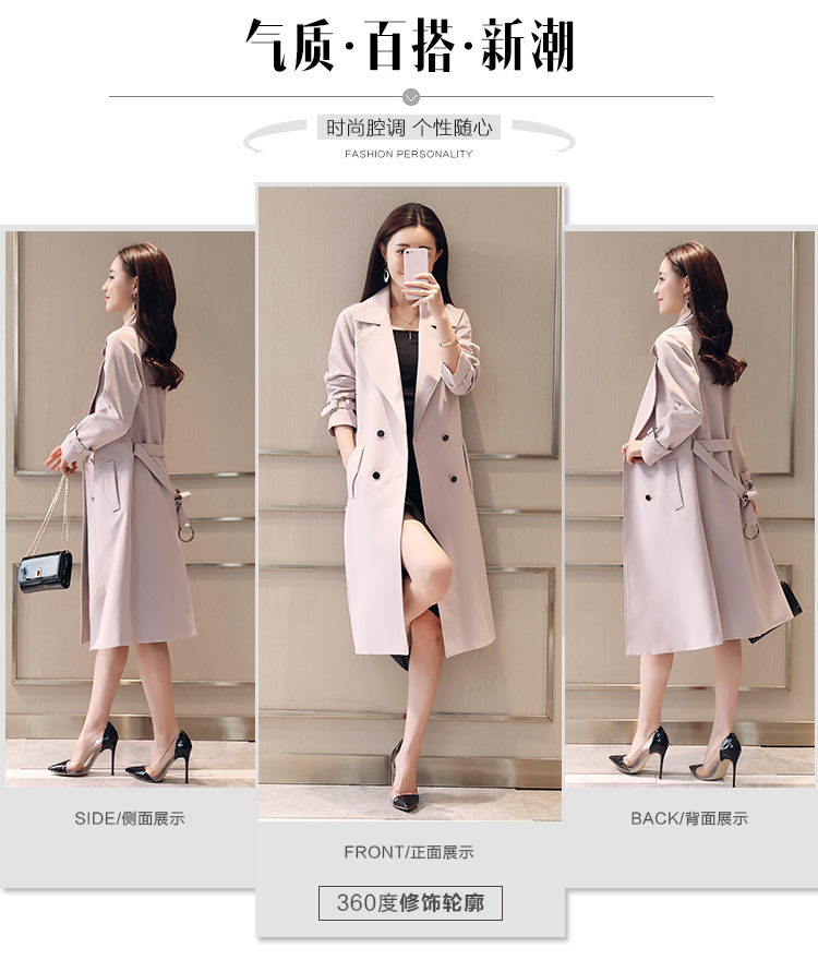 商品名稱(chēng):秋裝新款風(fēng)衣女中長(zhǎng)款端莊大氣顯瘦大碼春秋韓版寬松過(guò)膝外套