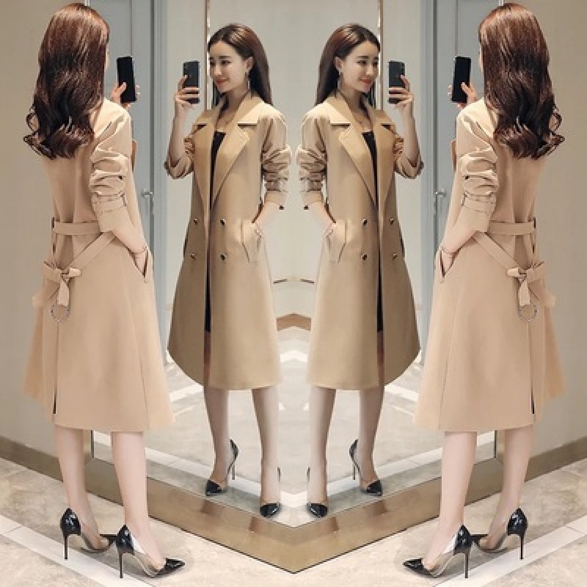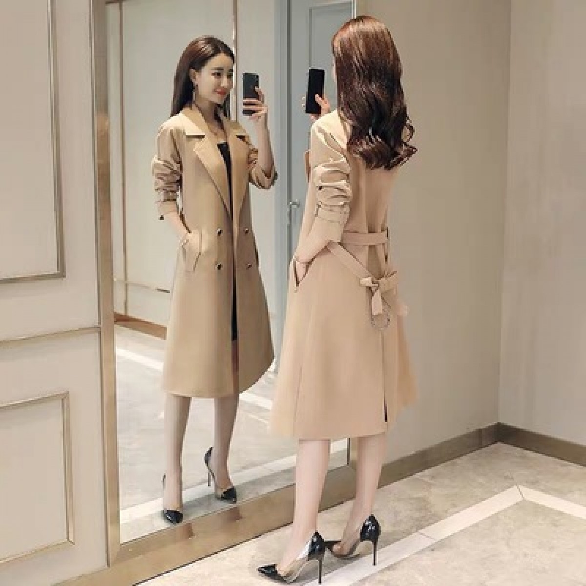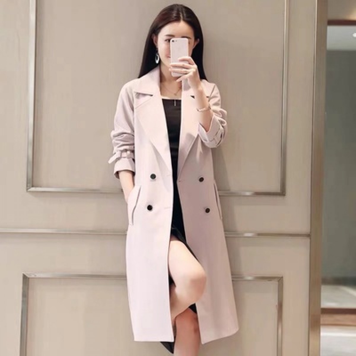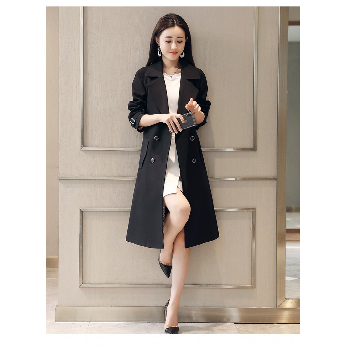 商品名稱(chēng):秋裝新款風(fēng)衣女中長(zhǎng)款端莊大氣顯瘦大碼春秋韓版寬松過(guò)膝外套