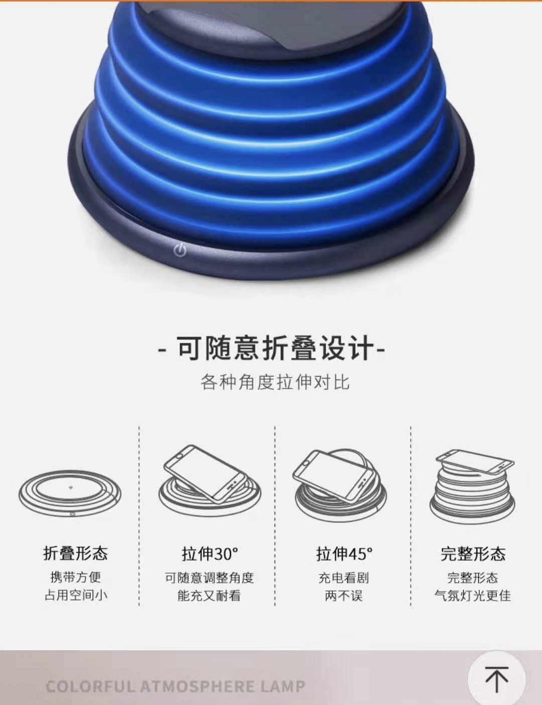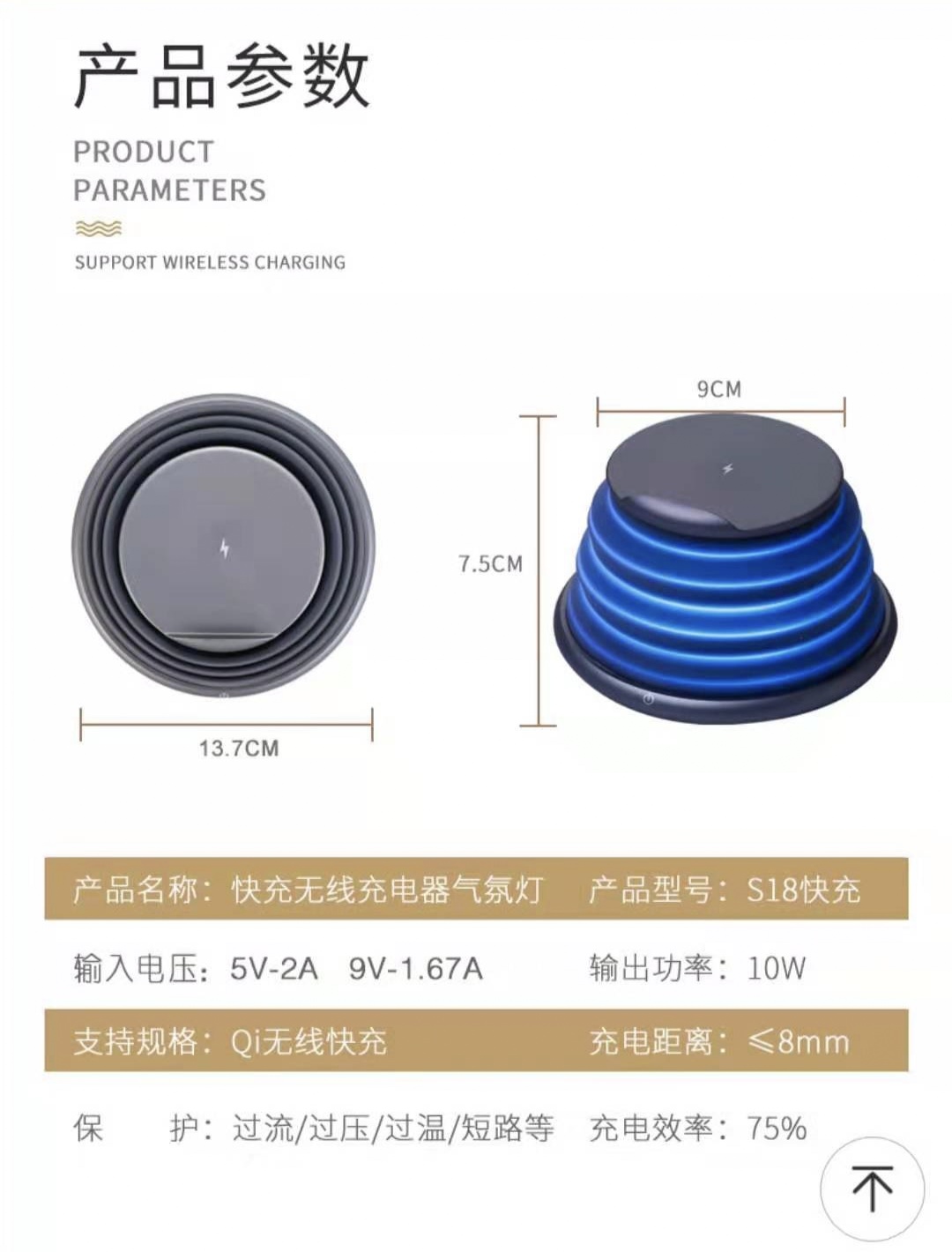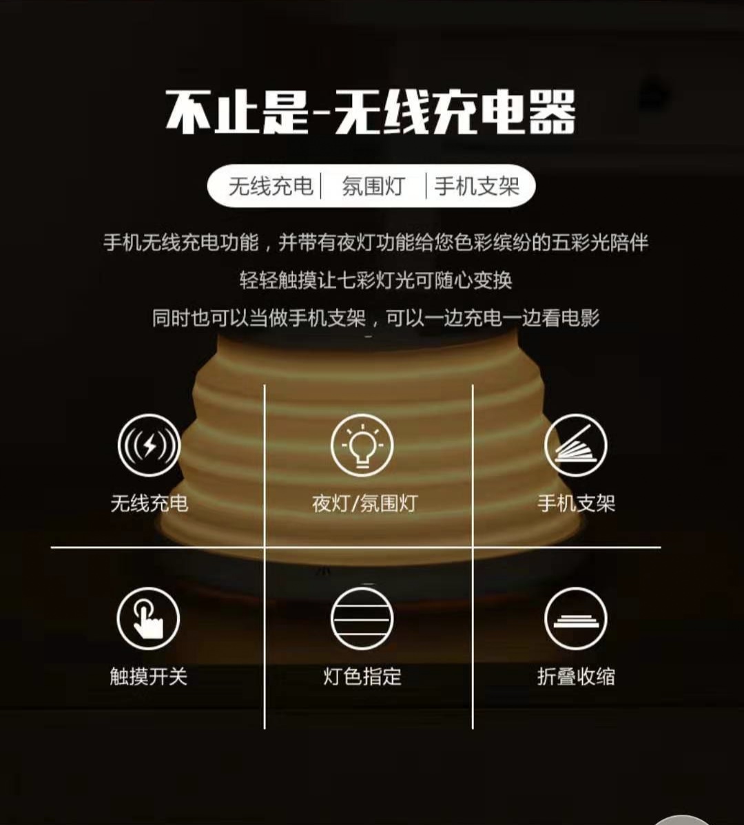 商品名稱:家用無線充電器 閃充快充 手機支架 氣氛燈,多功能無線充電器 包郵