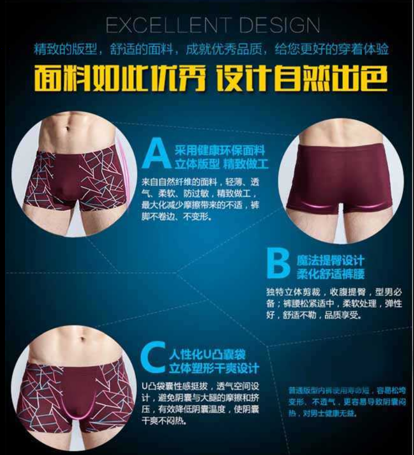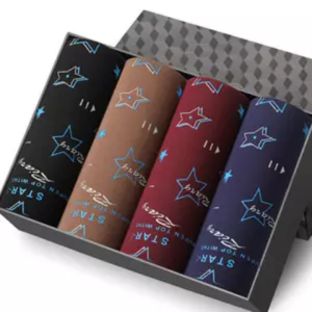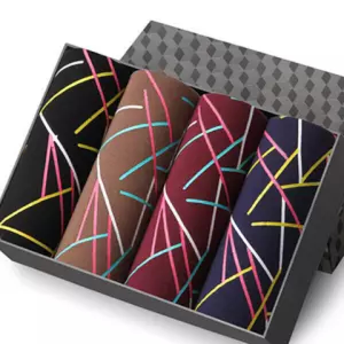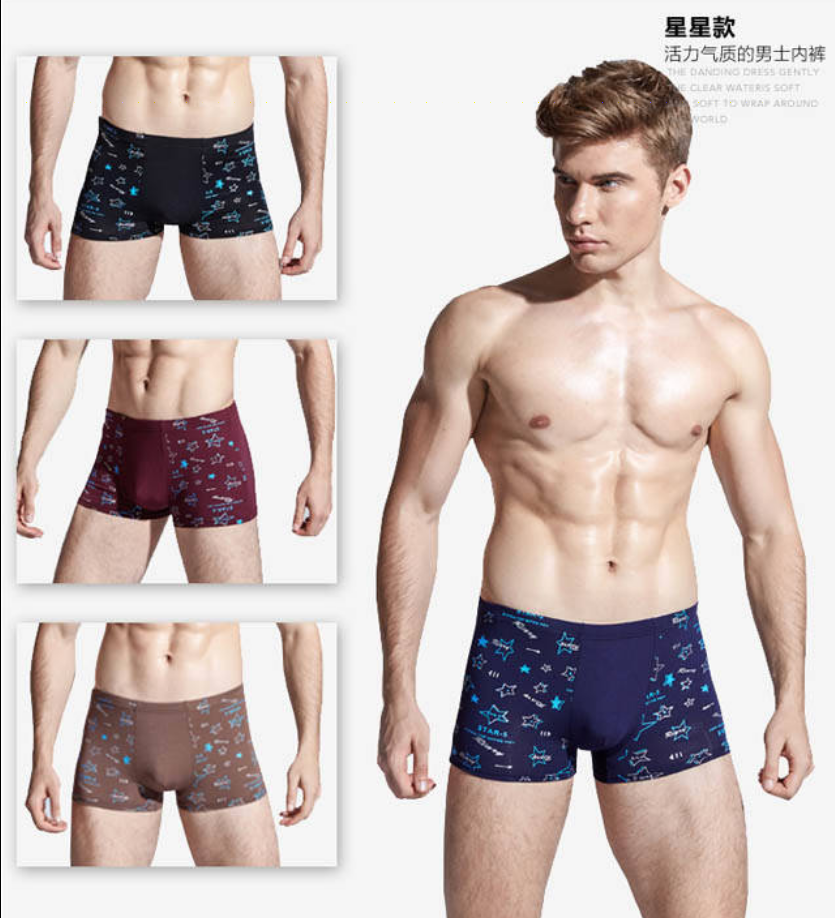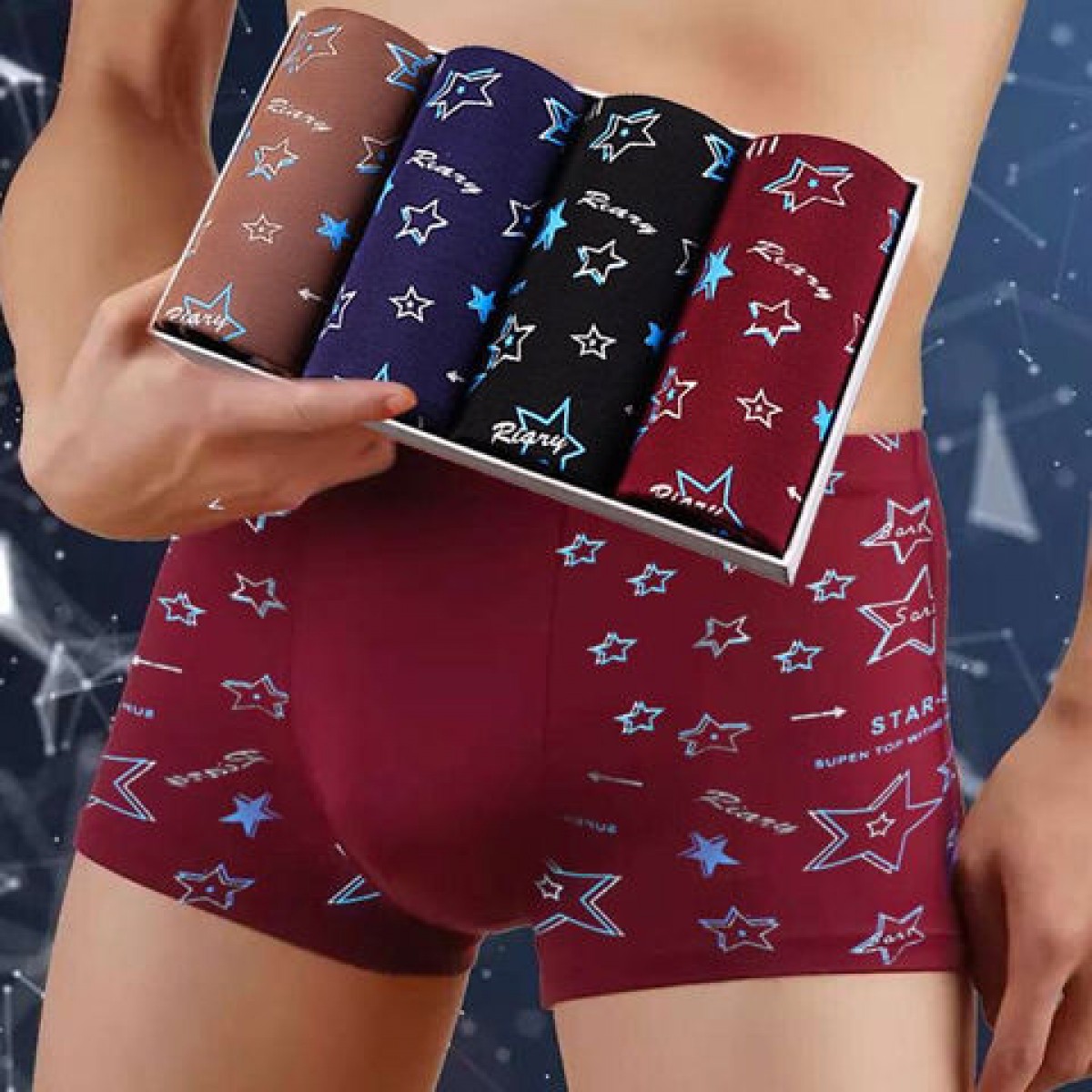 商品名稱:4條裝男士?jī)?nèi)褲印花平角時(shí)尚舒適透氣四角褲潮男內(nèi)褲