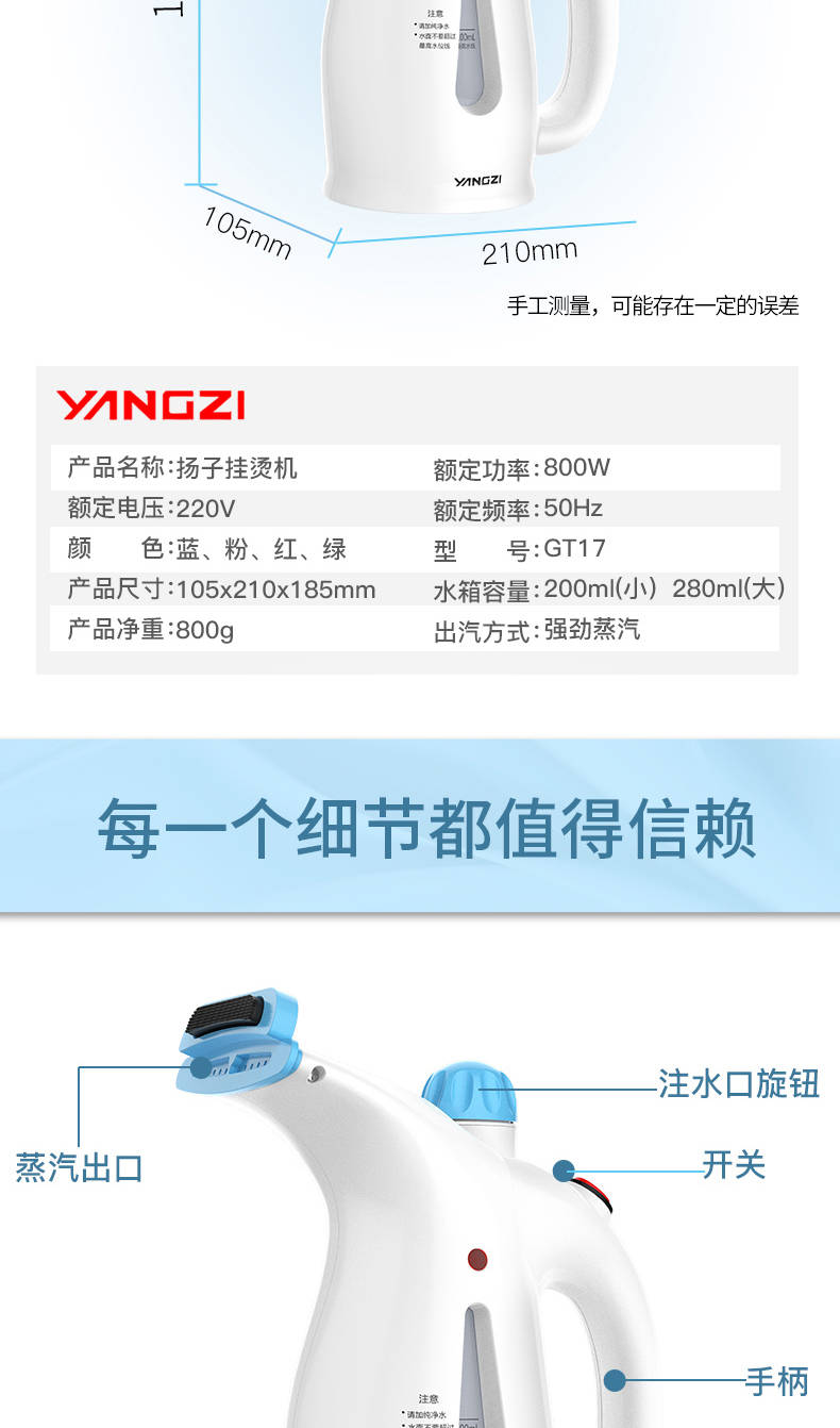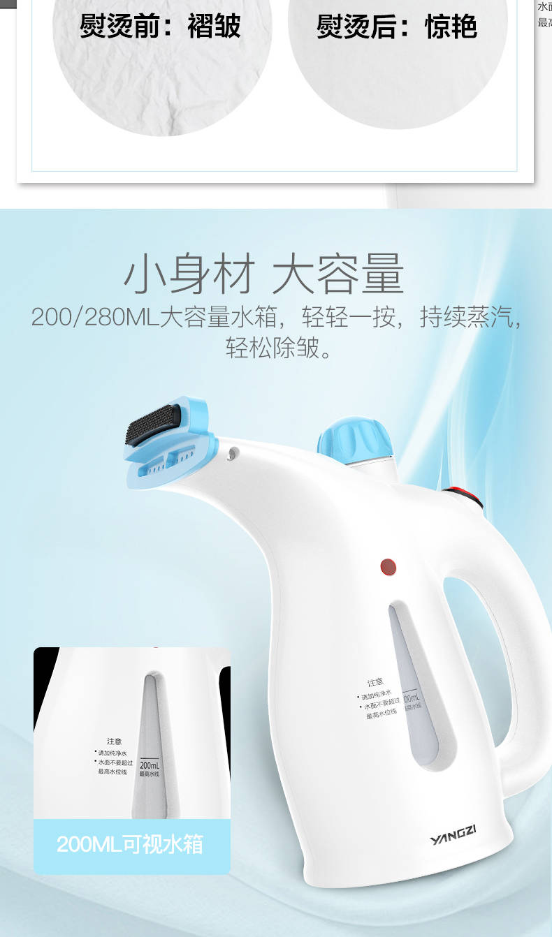 商品名稱:揚(yáng)子手持掛燙機(jī)家用蒸汽熨斗迷你熨衣服機(jī)小型便攜式熨燙機(jī)熨燙斗