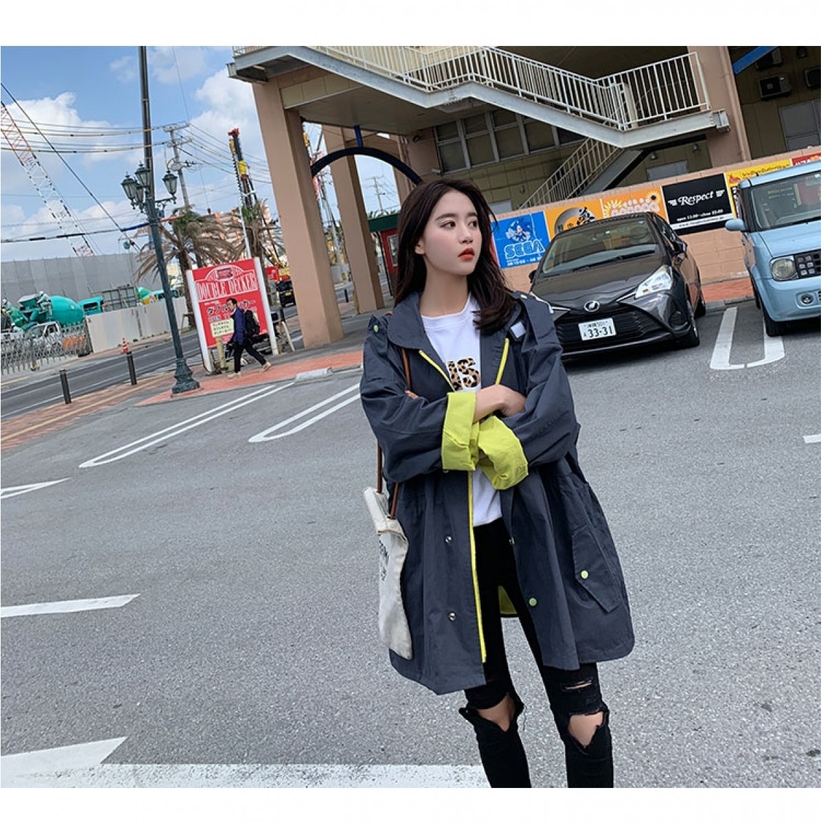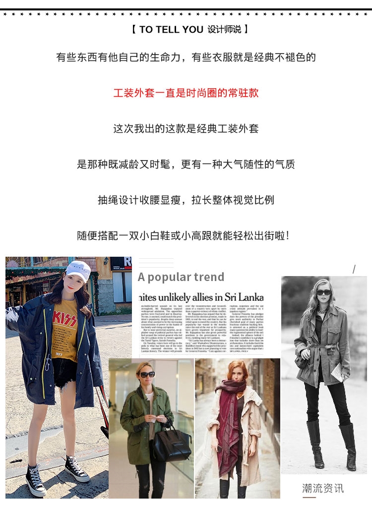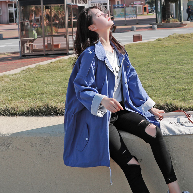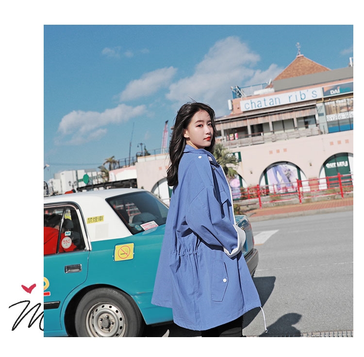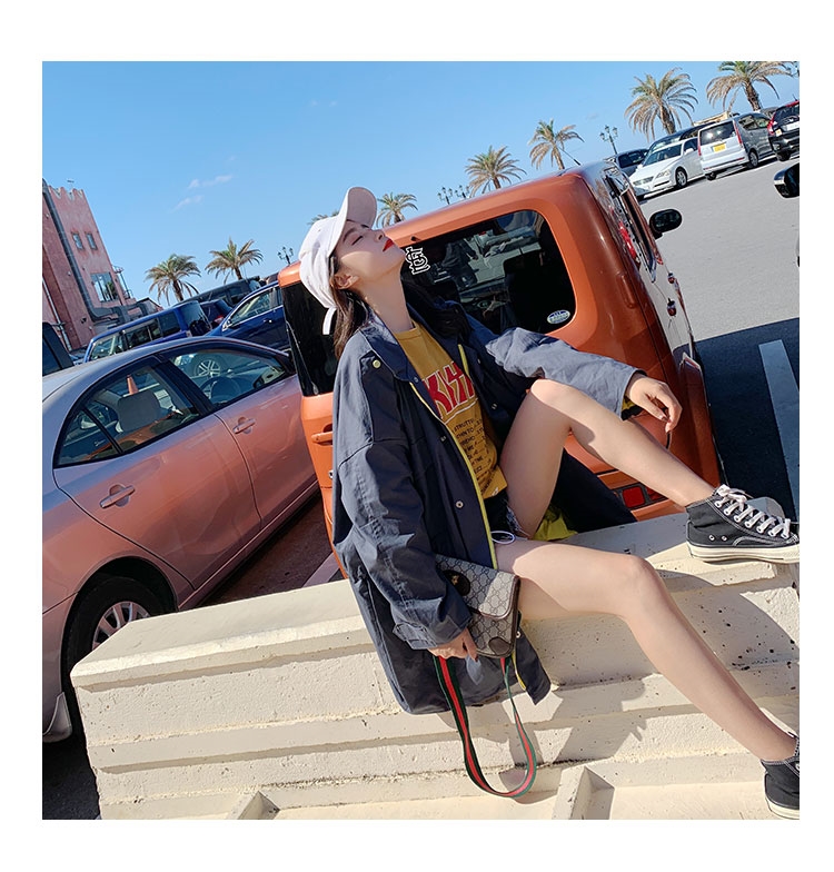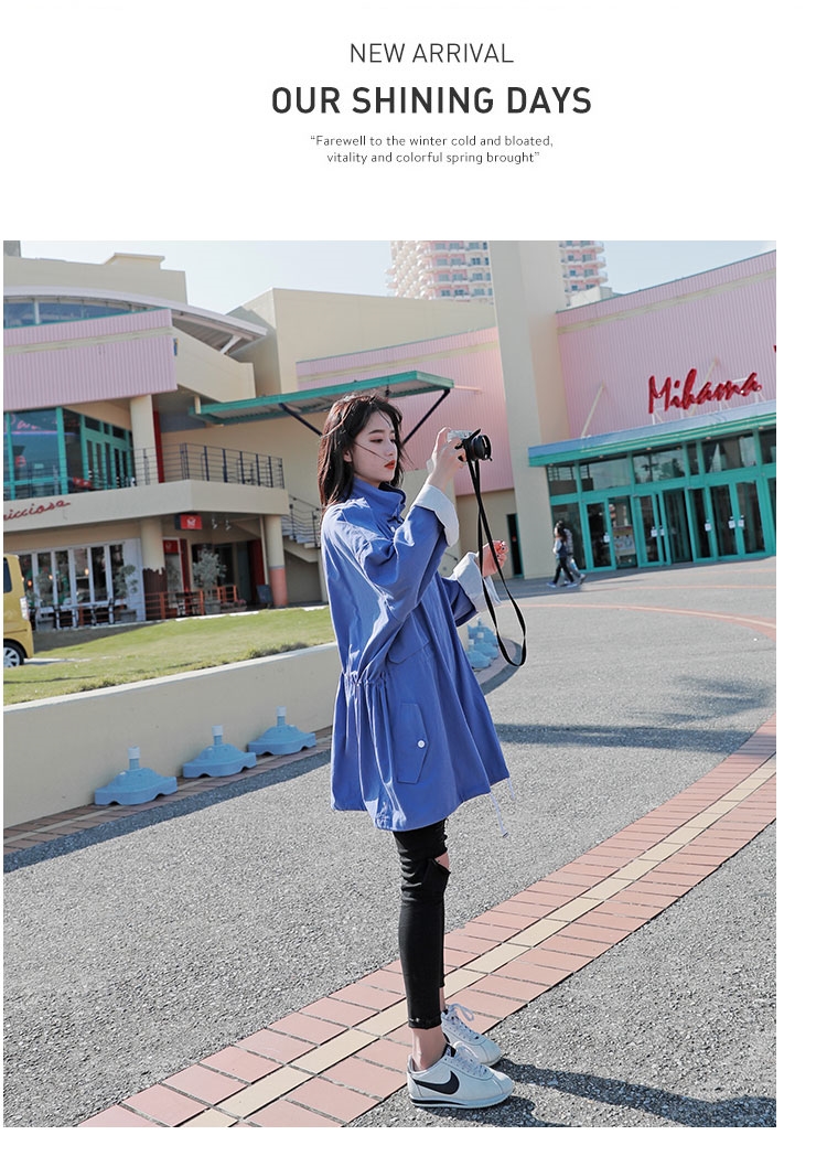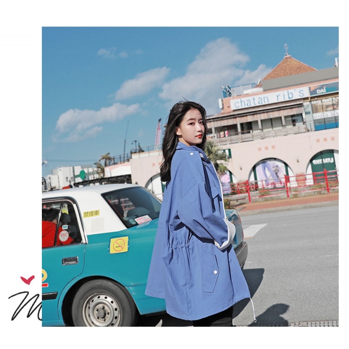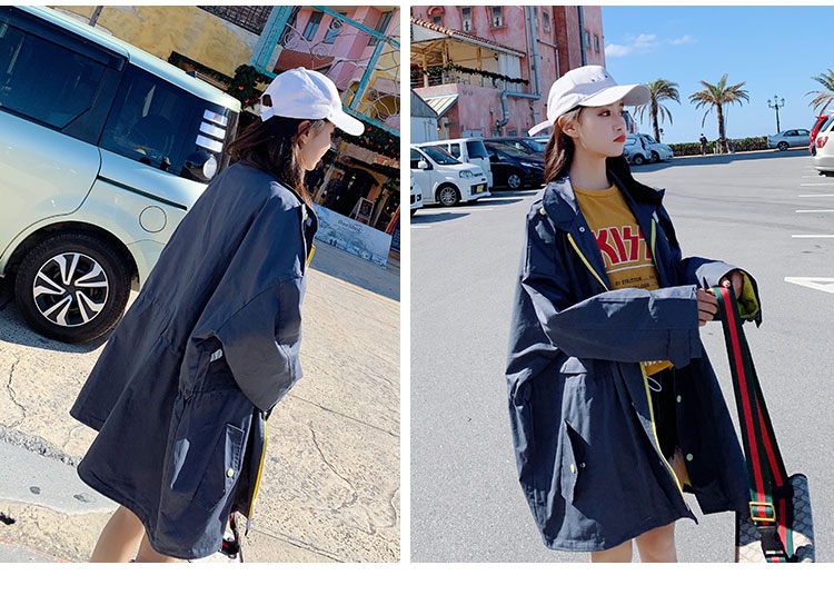 商品名稱:外套女春秋新款韓版學生中長款寬松流行工裝收腰waitmore風衣